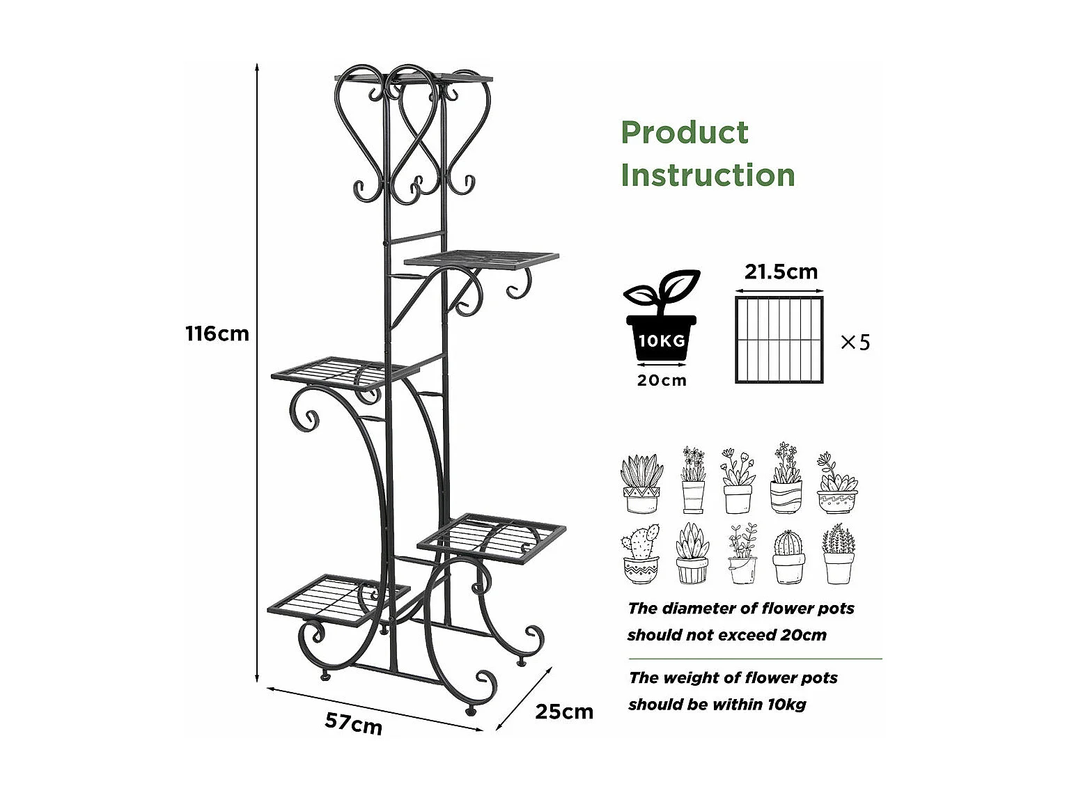 Étagère plante intérieure porte plantes extérieur de 5 niveaux support pot de fleurs 107x57x22cm