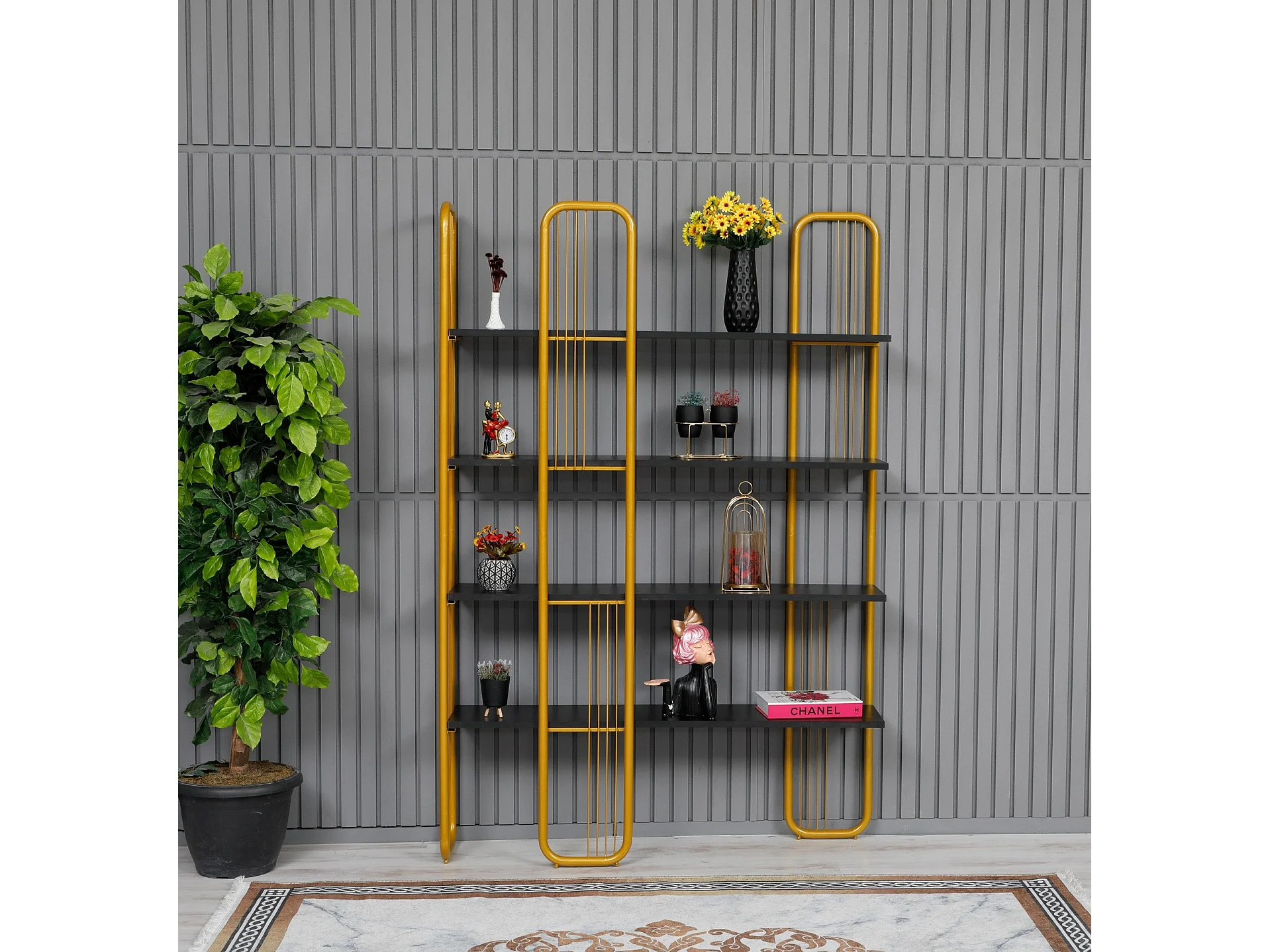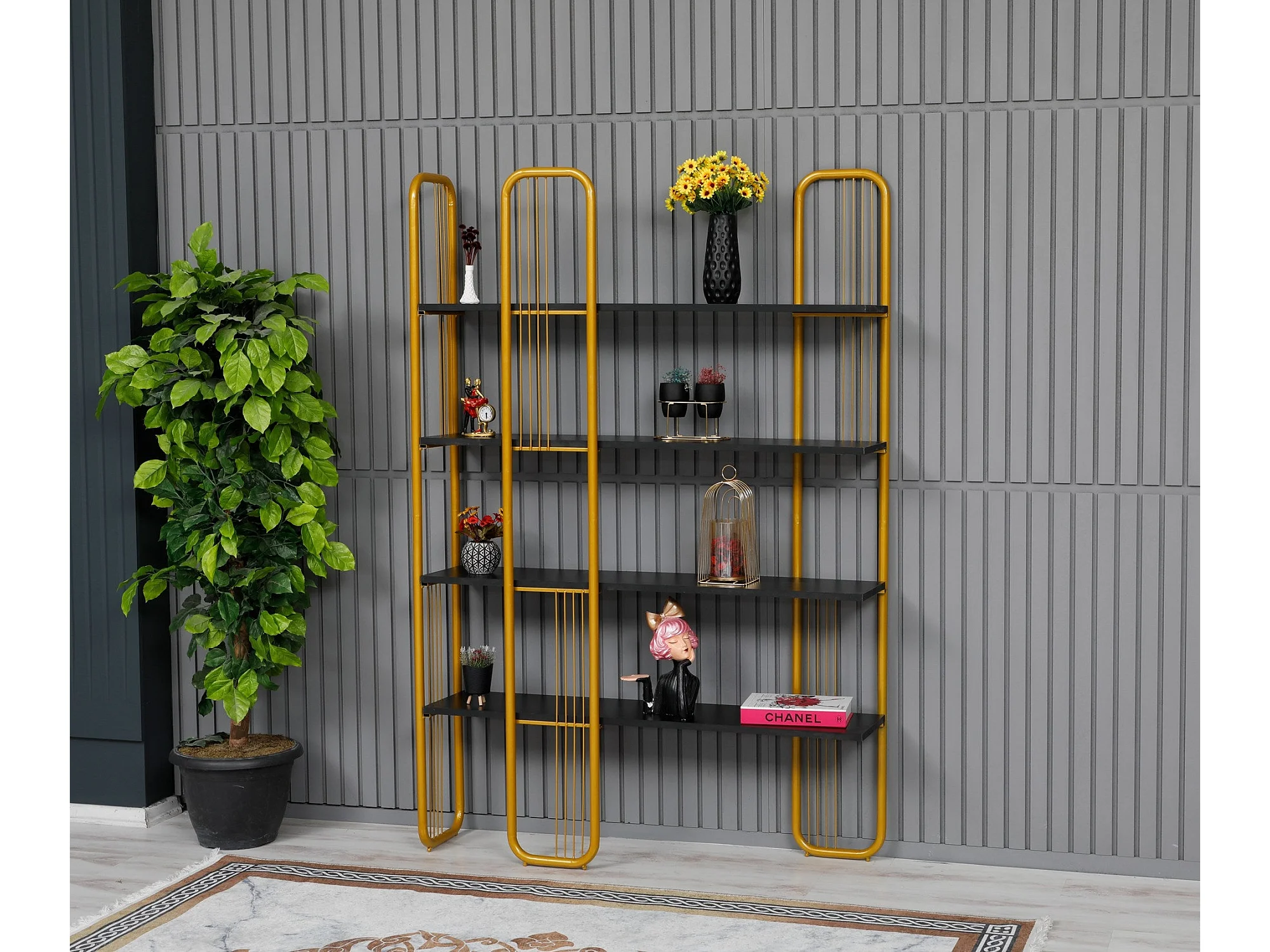 Etagères bibliothèque Arnal L125xH180cm Bois Noir et Métal Or