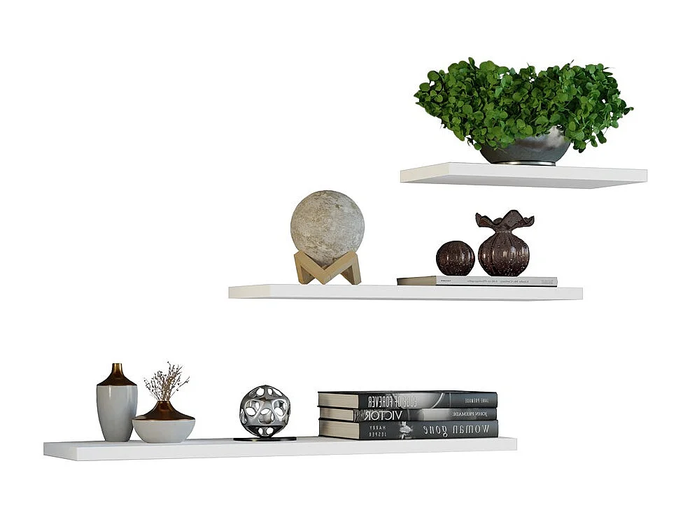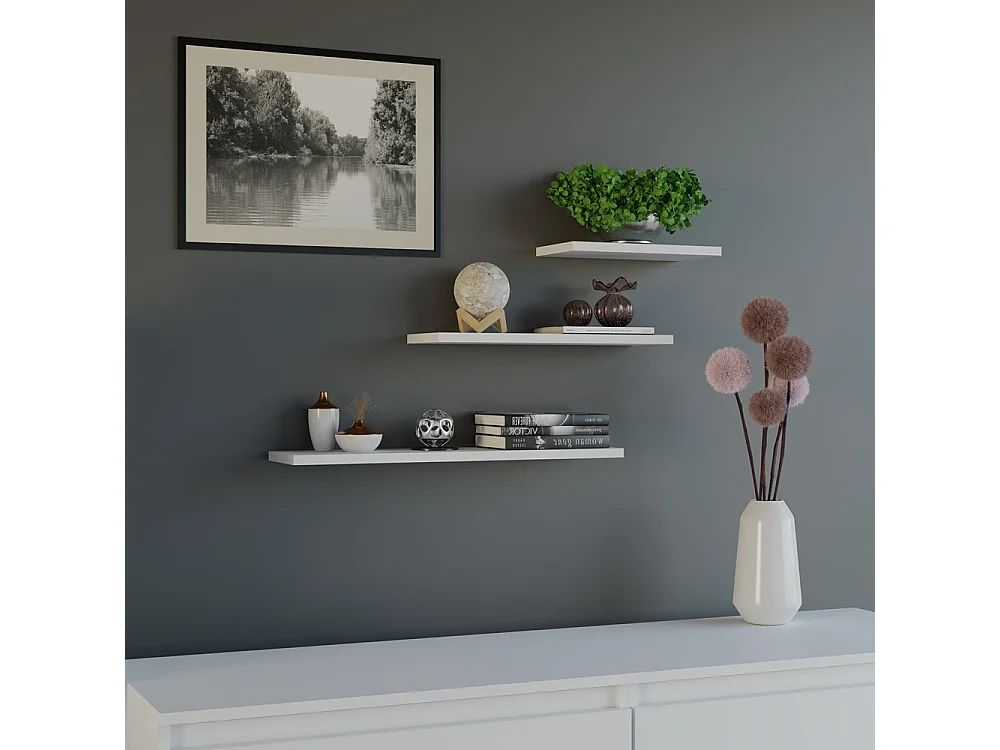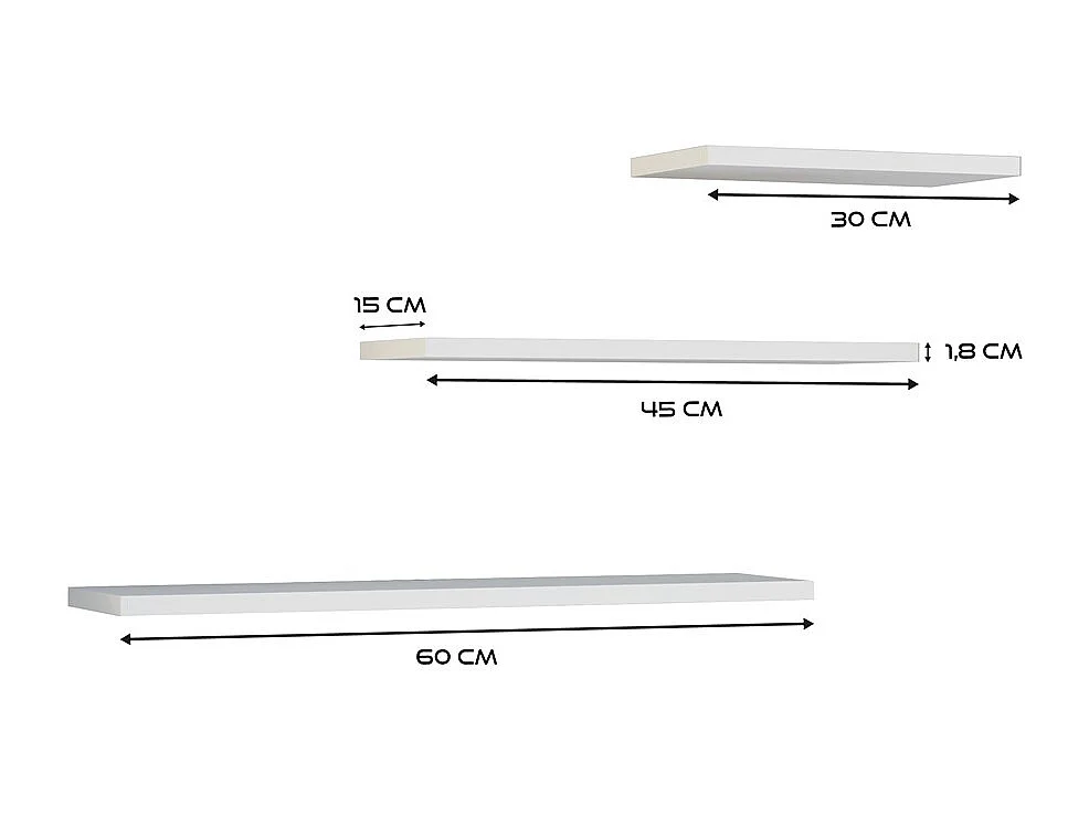 Étagères suspendues, blanches, 60 / 45 / 30 x 1,8 x 15 cm