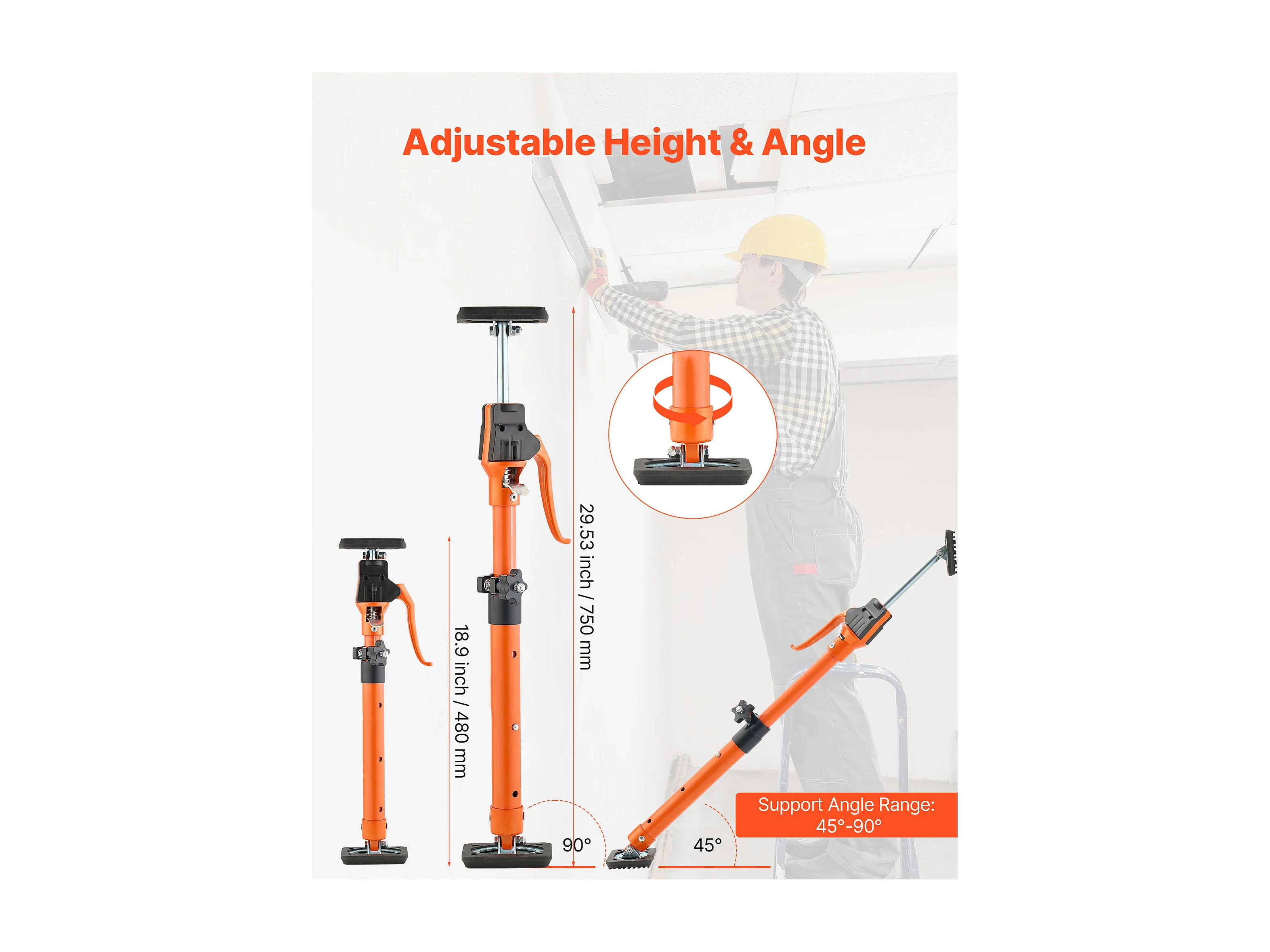 Étai de Soutien Télescopique SucceBuy 48-75 cm Poteau de Support Réglable Lot de 2, Tige Dégagement Rapide, en Acier, Charge 100 kg, Étai pour Plafond