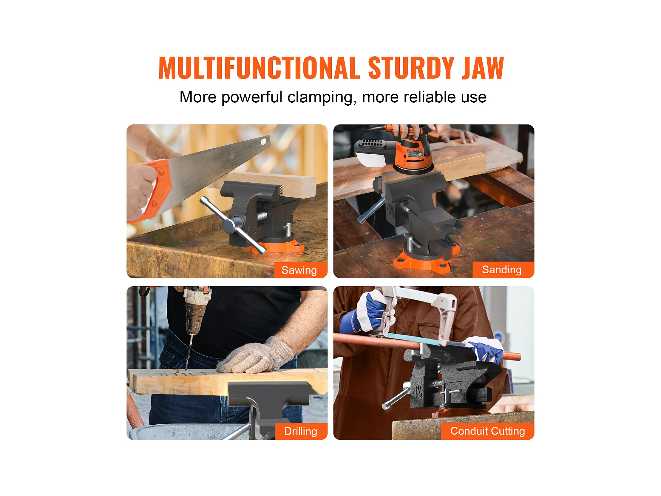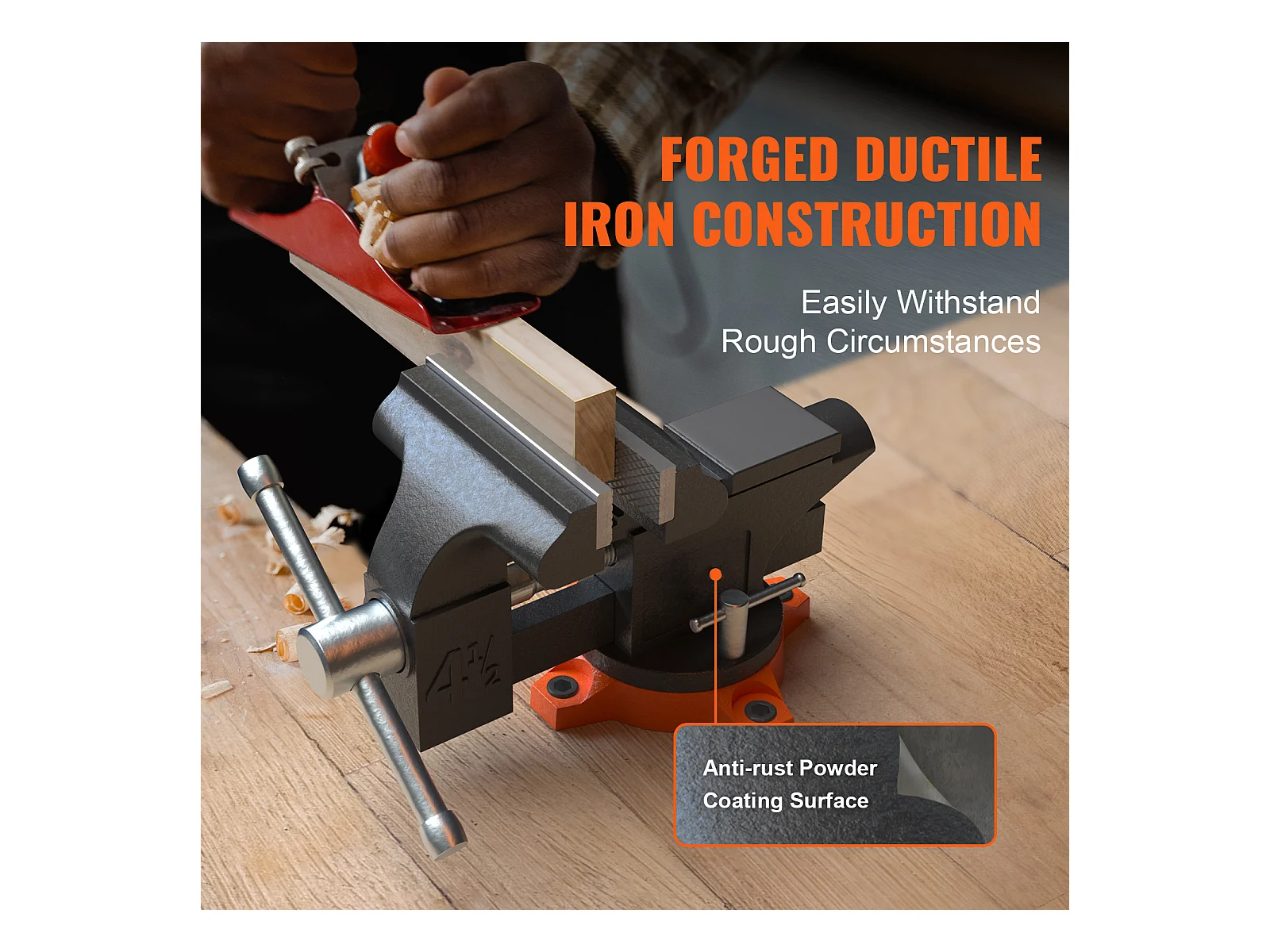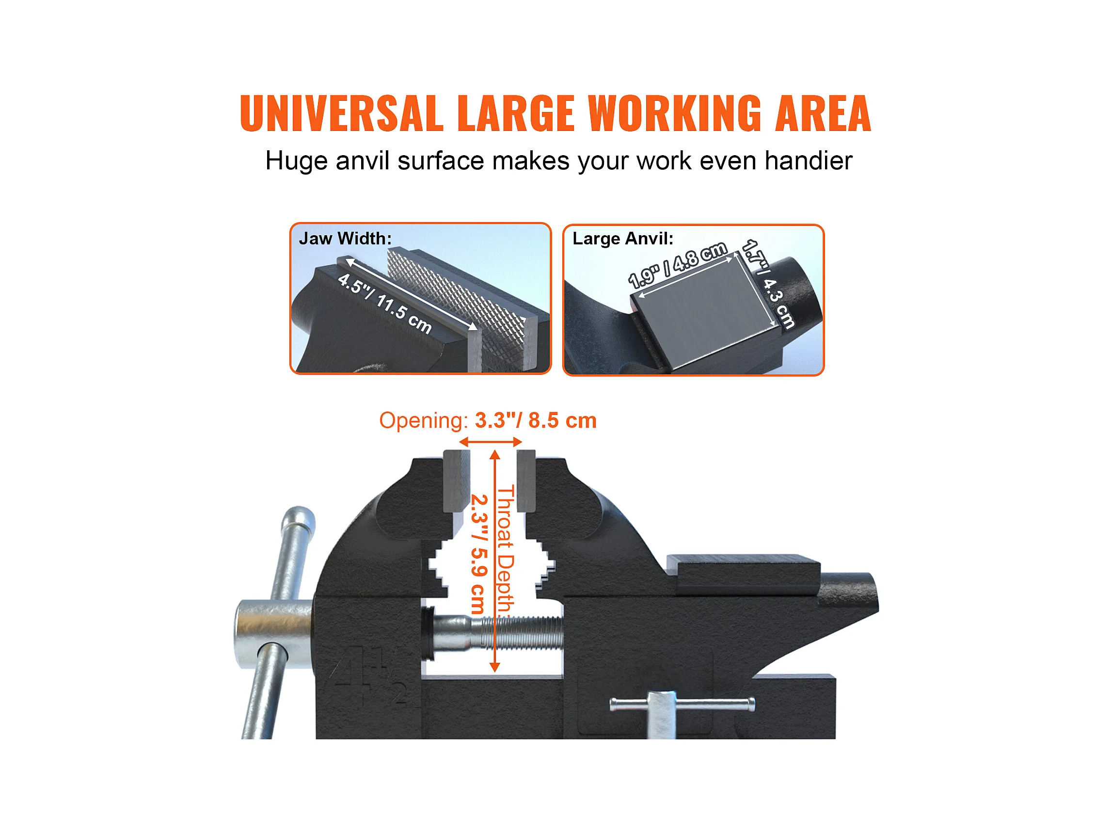 Étau d'Établi SucceBuy de 11.4cm avec Enclume, Base Pivotante à 240 °, Étau Polyvalent Robuste