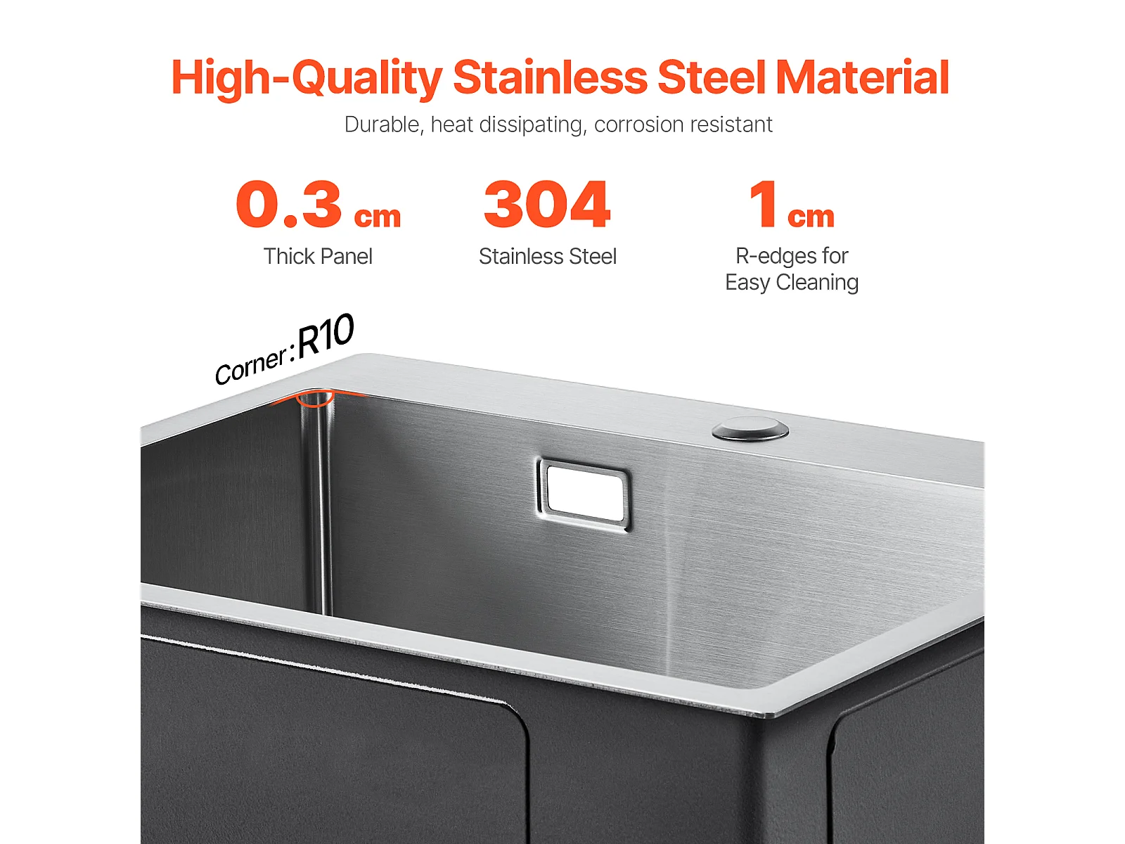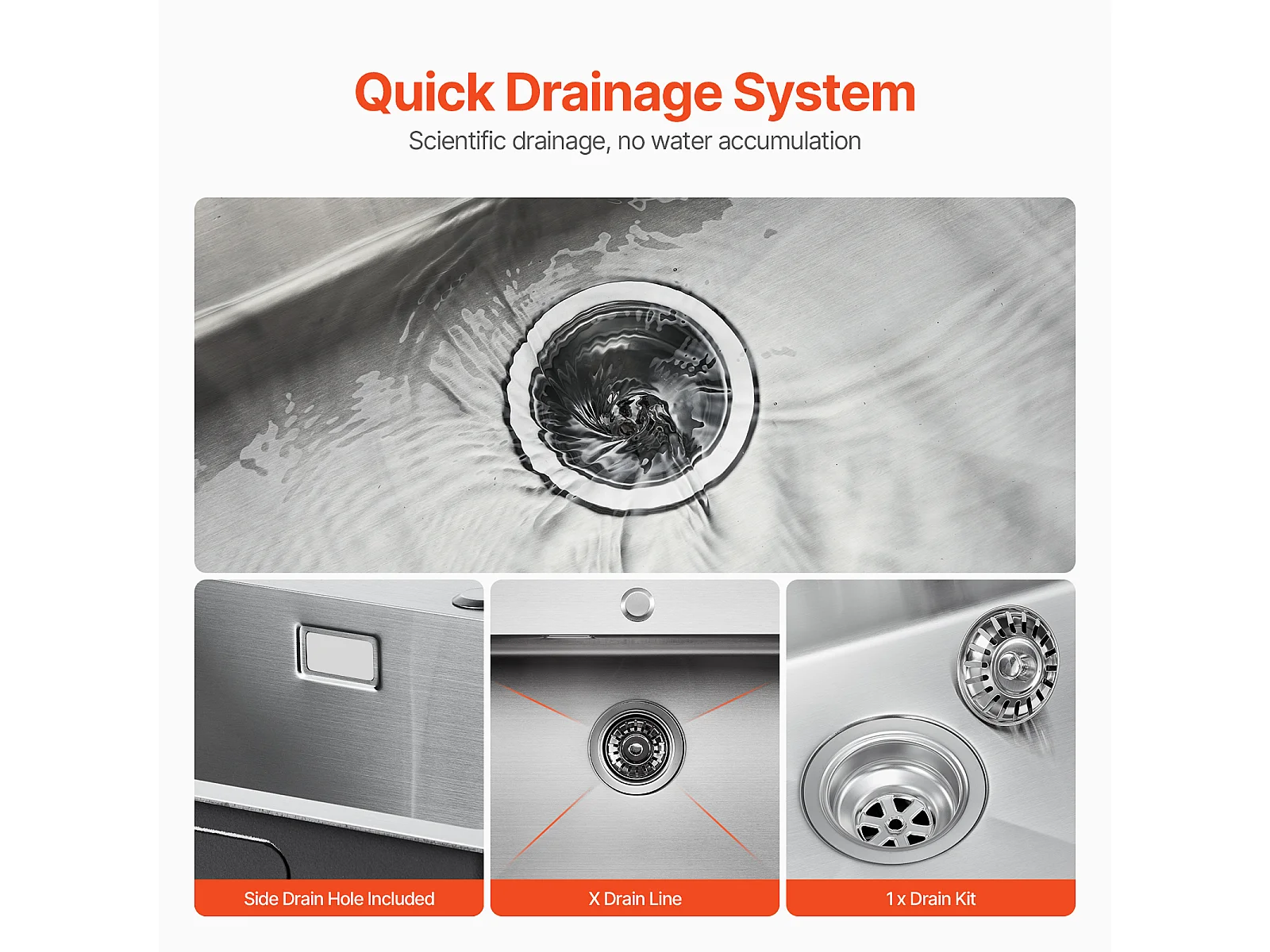 Évier de cuisine SucceBuy Évier de cuisine 70 cm, Cuve Simple Encastrée Sous Plan, Acier Inoxydable