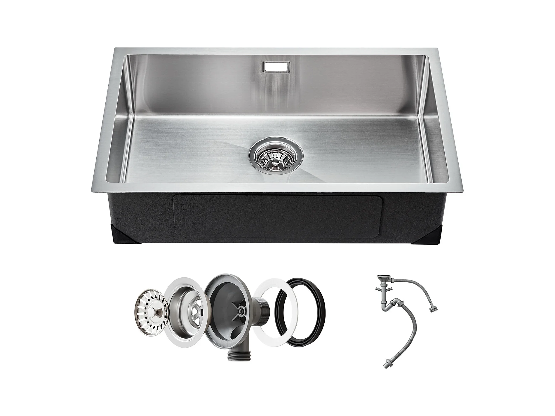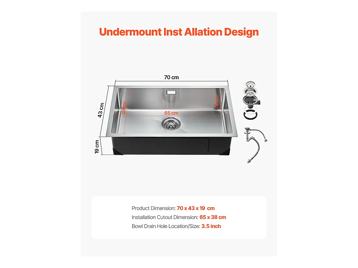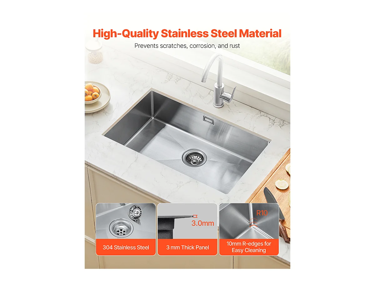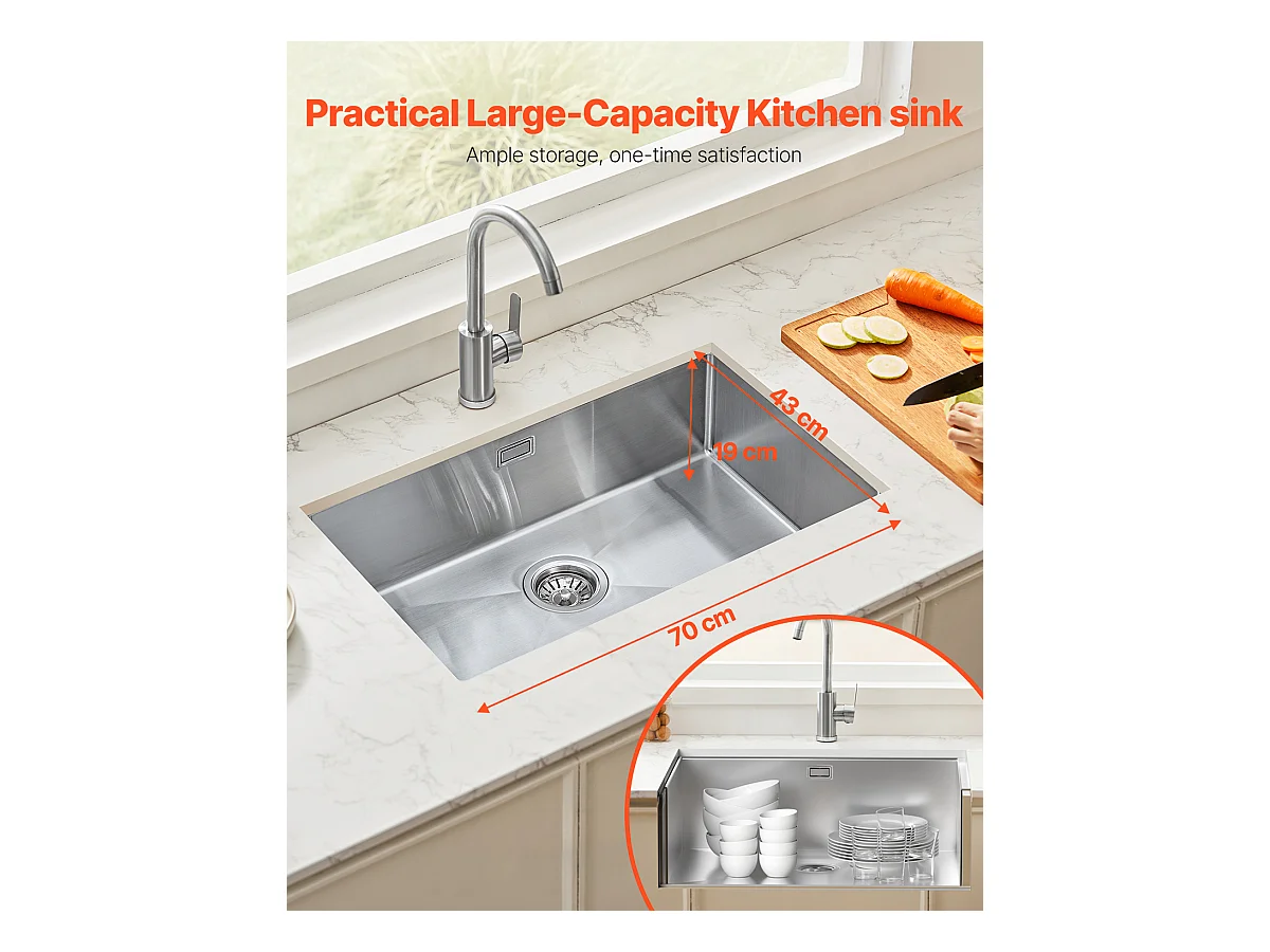 Évier de cuisine SucceBuy Évier de cuisine 70 cm, Cuve Simple Encastrée Sous Plan, Acier Inoxydable