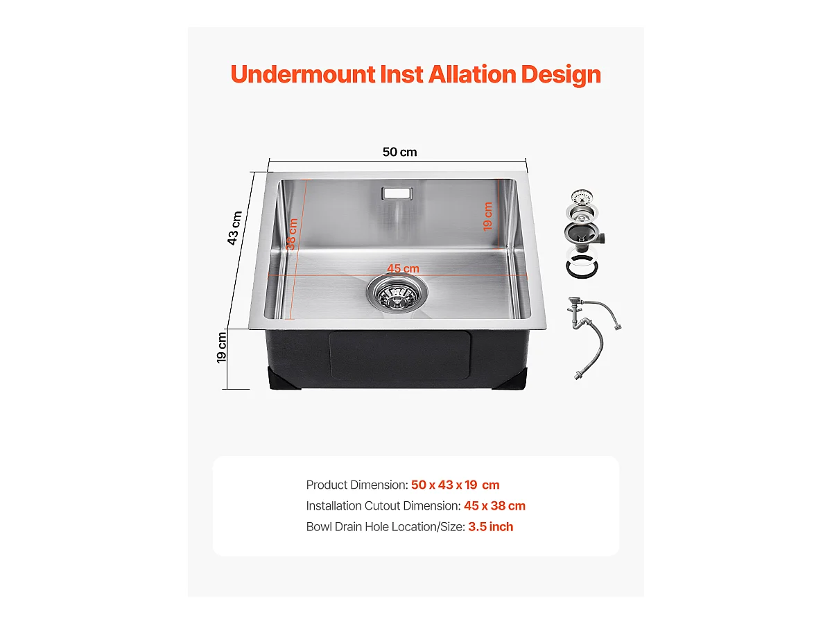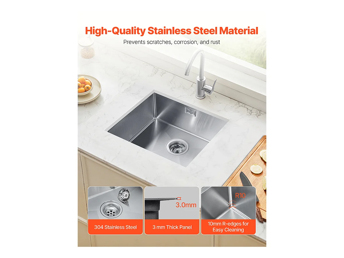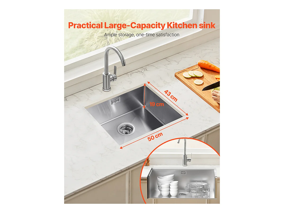 Évier de Cuisine SucceBuy Évier de Cuisine Sous Plan 50 cm à Cuve Simple en Acier Inoxydable