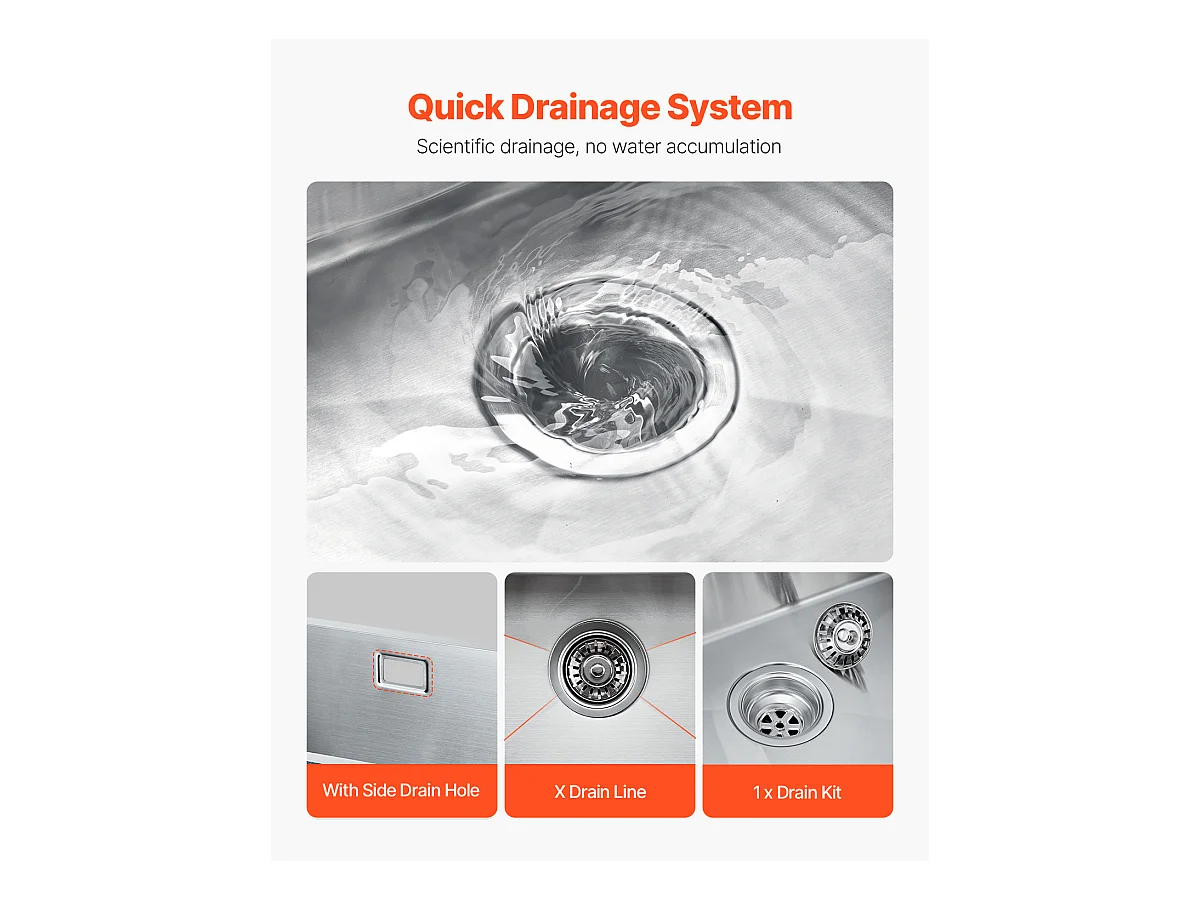 Évier de cuisine SucceBuy Évier de cuisine 70 cm, Cuve Simple Encastrée Sous Plan, Acier Inoxydable
