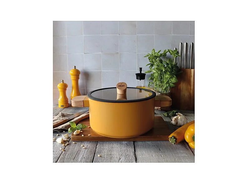 Ogo Living - Faitout Ector 24cm En Alu Revetement Ceramique Jaune Avec Manche Bois