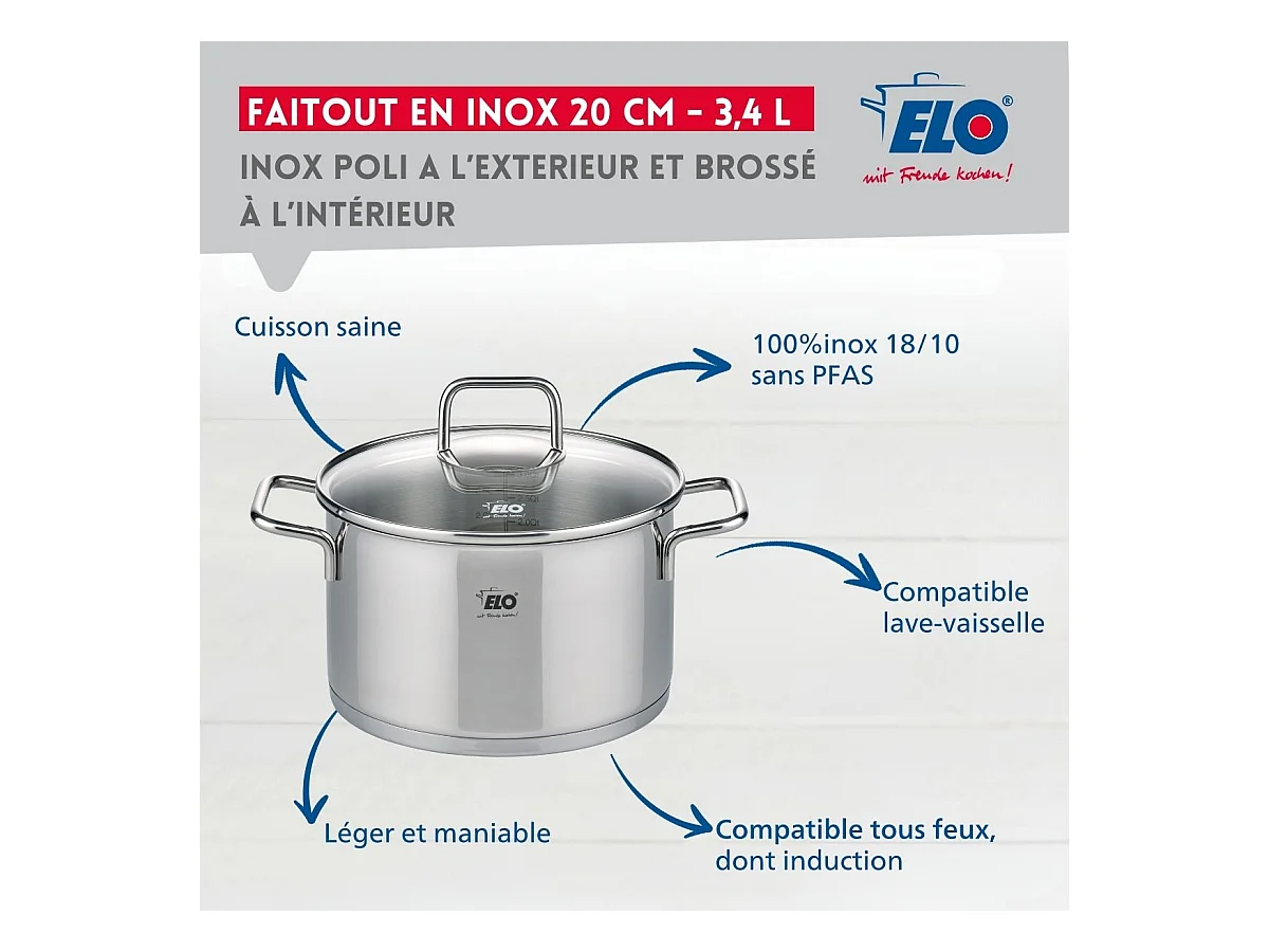 Faitout en inox 20 cm de 3,4 litres Elo Citrin