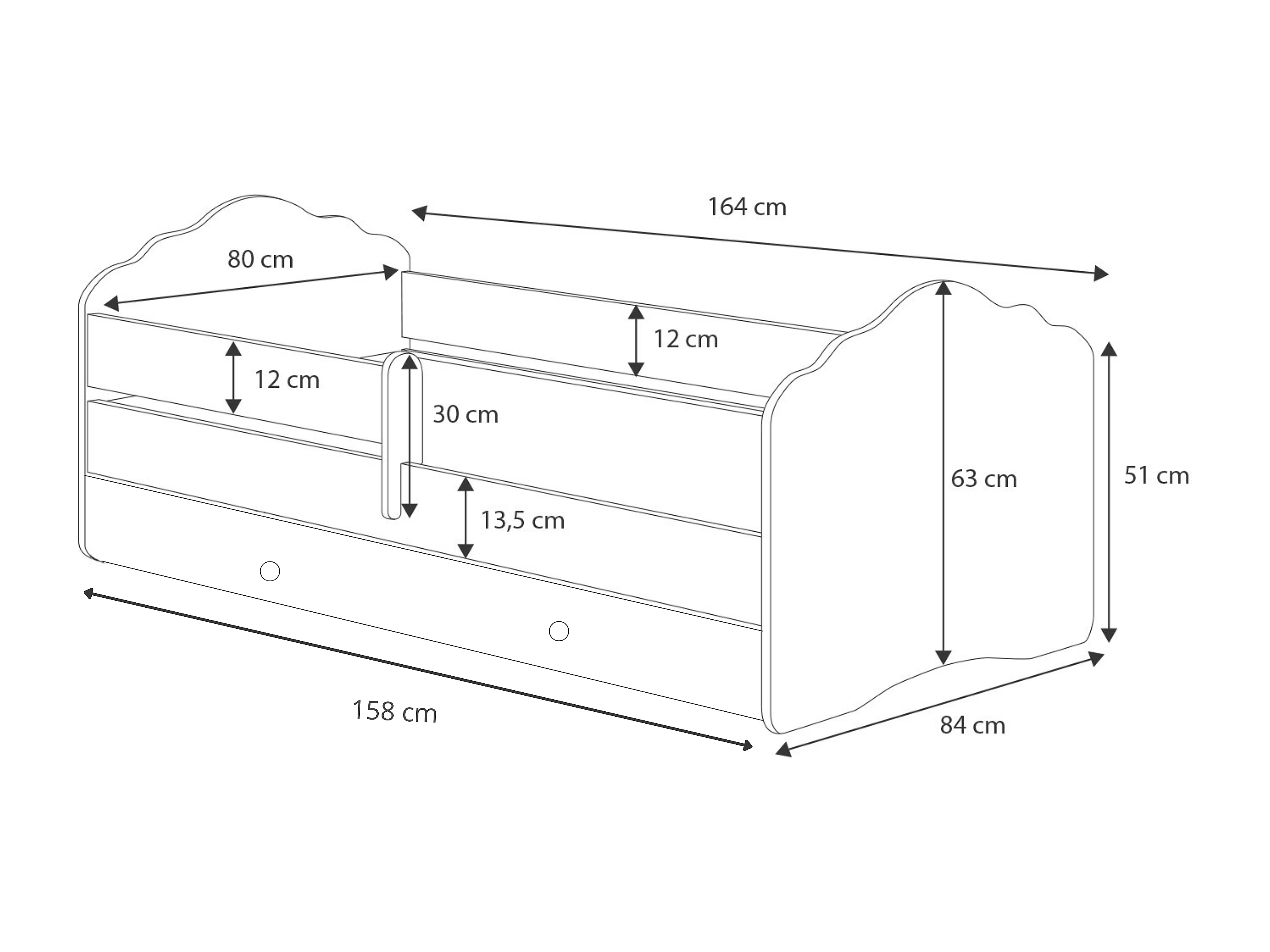 Fala - lit simple 160x80 blanc, dans un ensemble avec un tiroir, une balustrade, un matelas et un cadre