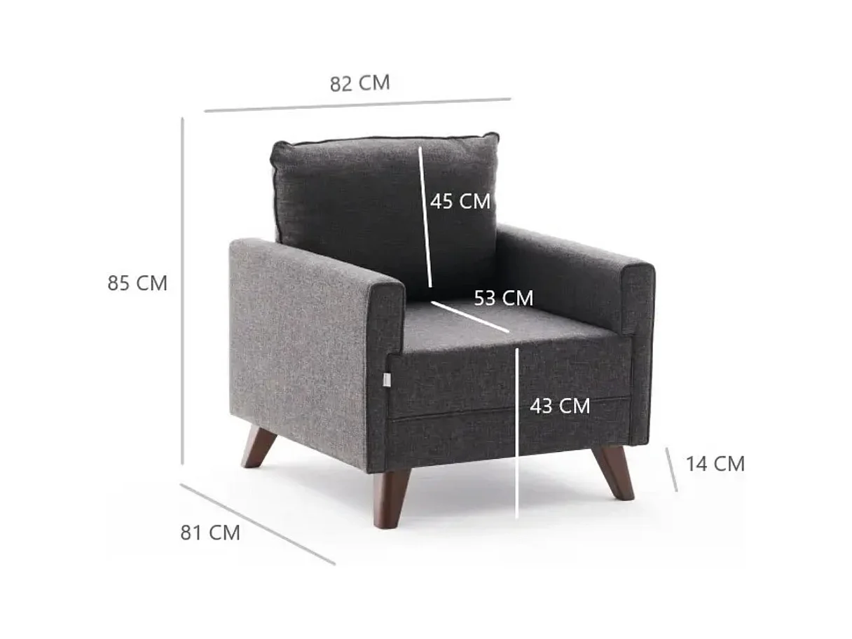 Fauteuil 1 place tissu gris foncé Kandy 82cm