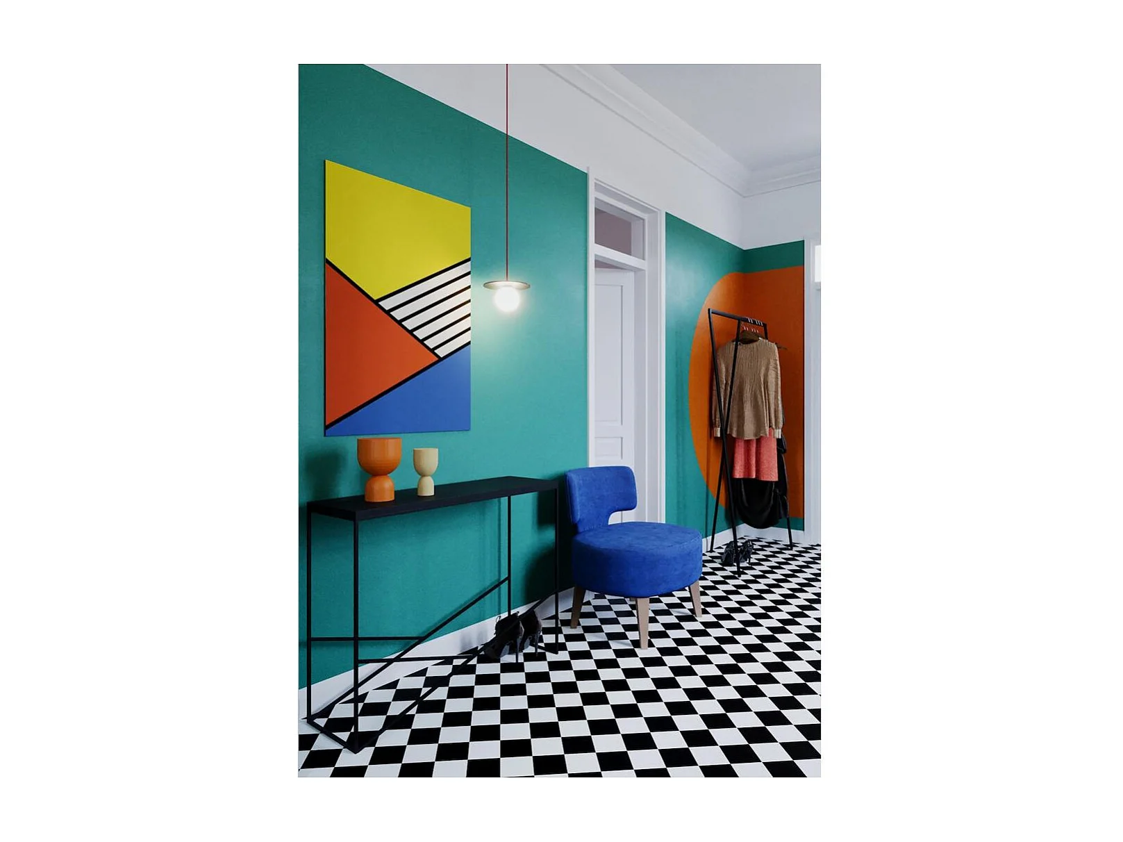 Fauteuil en polyester bleu paon et pieds en acier noir Avi