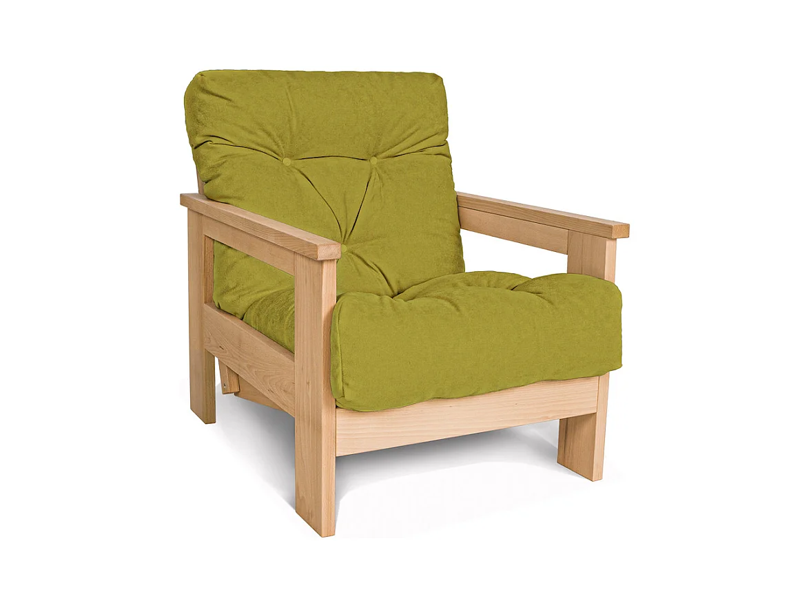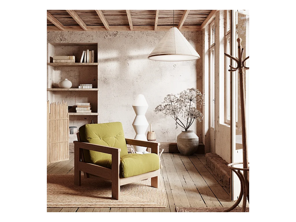 Fauteuil CATCH ME, Rembourrage confortable, Tissu 3D, Haute résistance, Détails en bois, Couleur vert clair