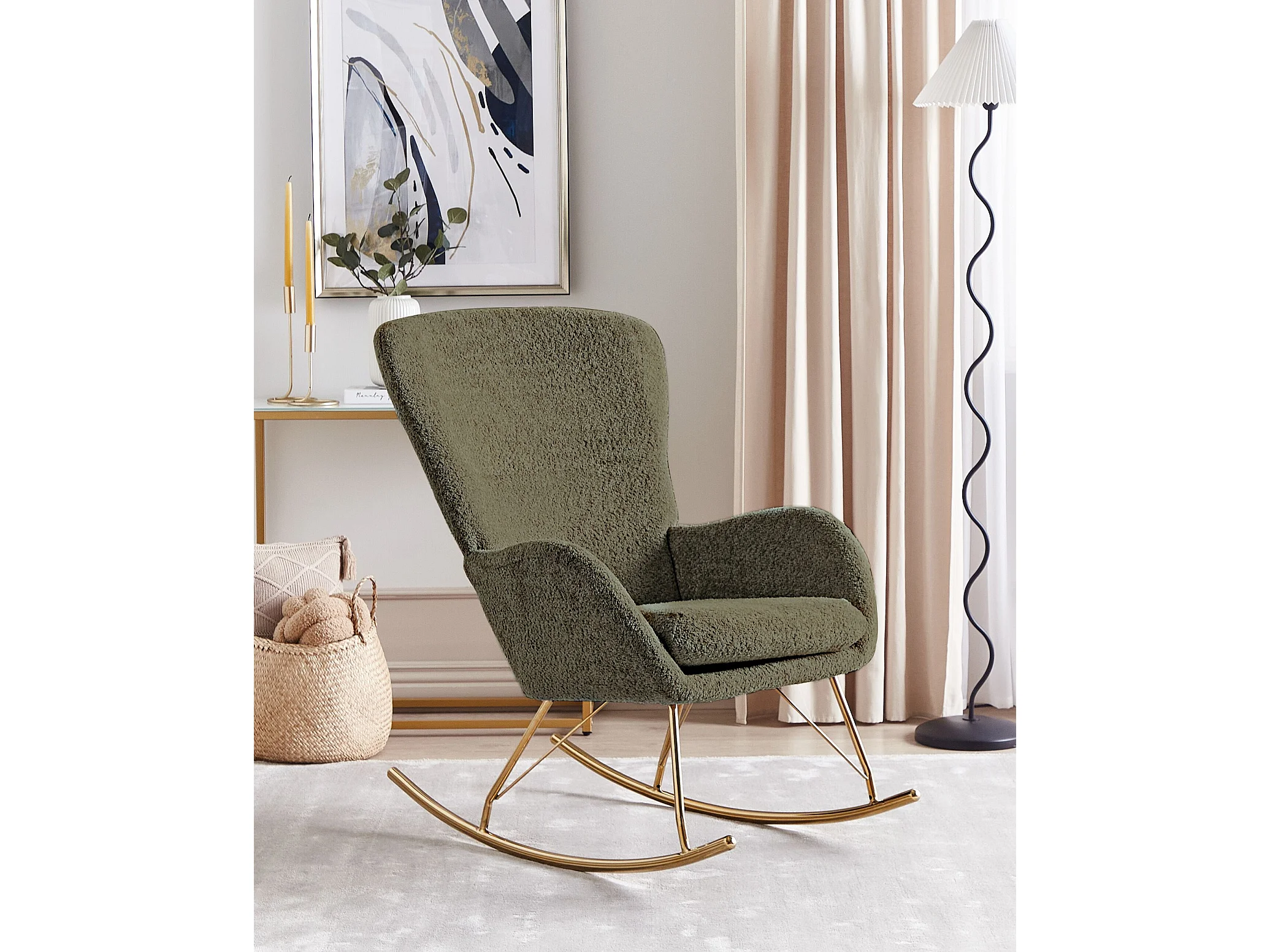 Fauteuil à bascule ANASET Bouclé Vert foncé