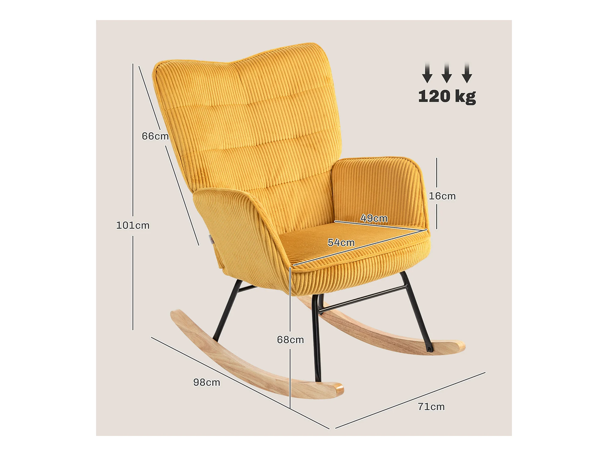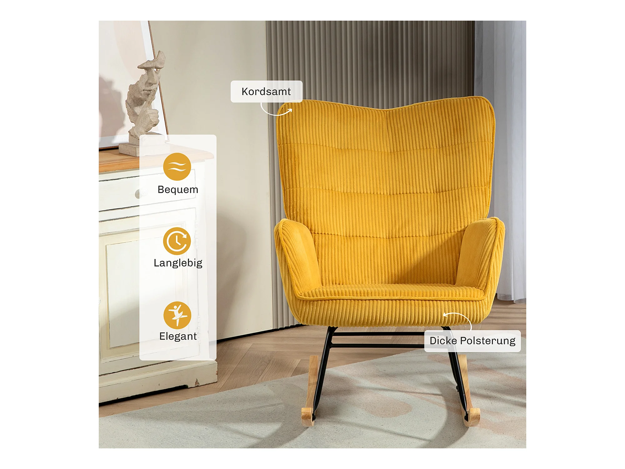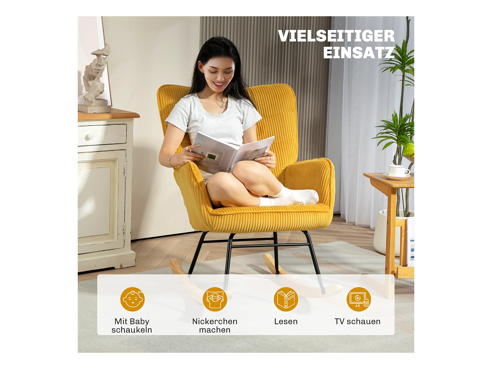 Fauteuil à bascule aspect polaire berbère,accoudoirs,patins en bois,fauteuil relax,jaune