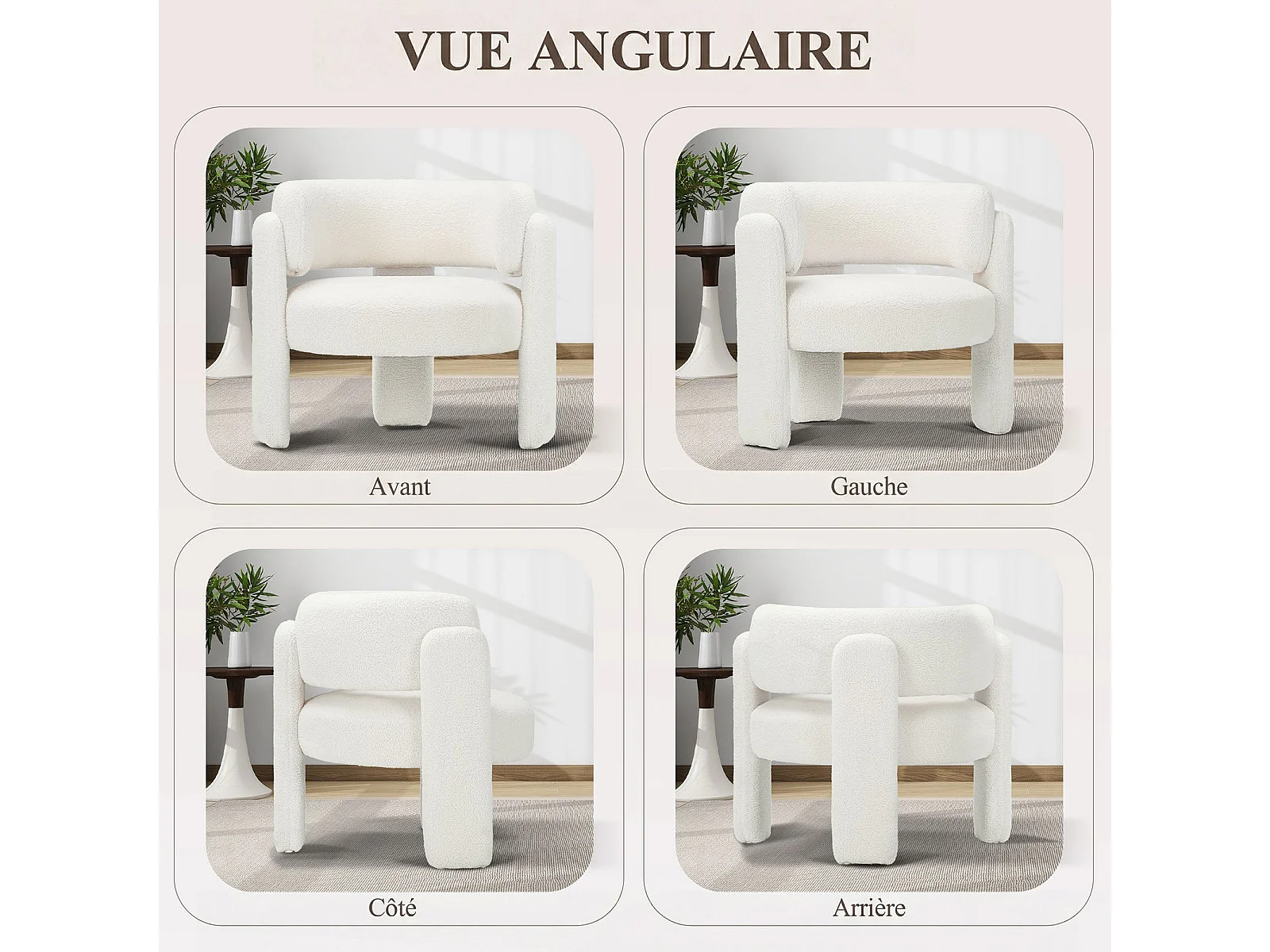 Fauteuil baril moderne en bois solide, mousse haute densité, tissu hypoallergénique – Blanc Crème