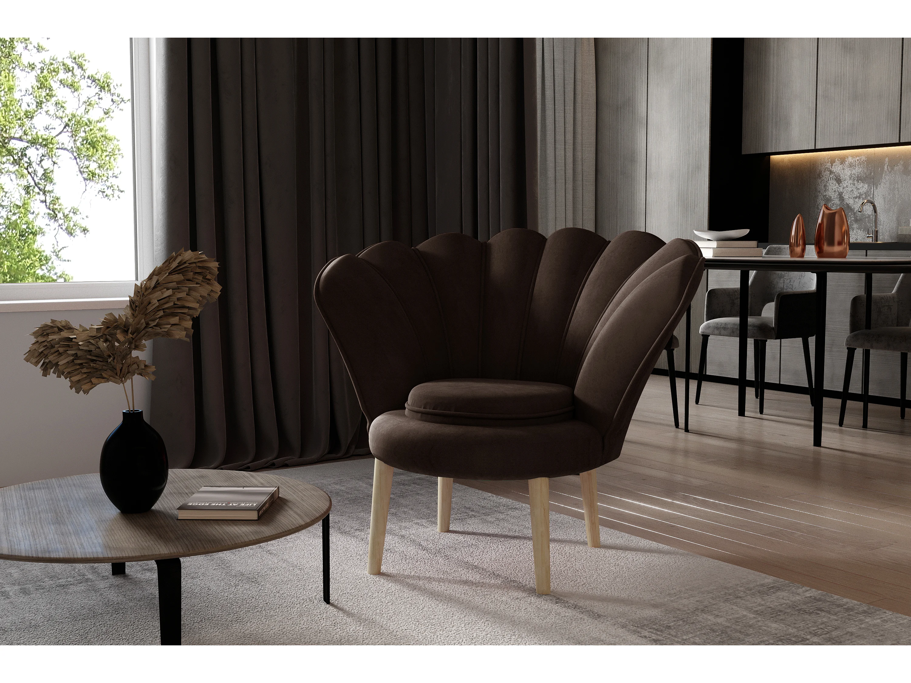 Fauteuil coquillage velours marron foncé Skidra