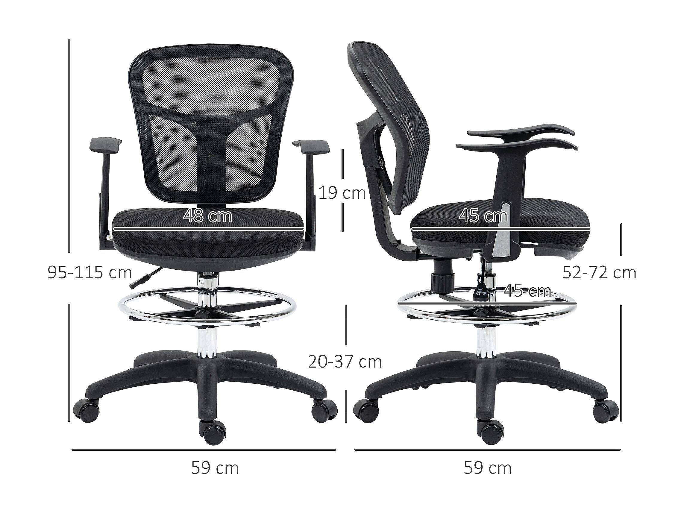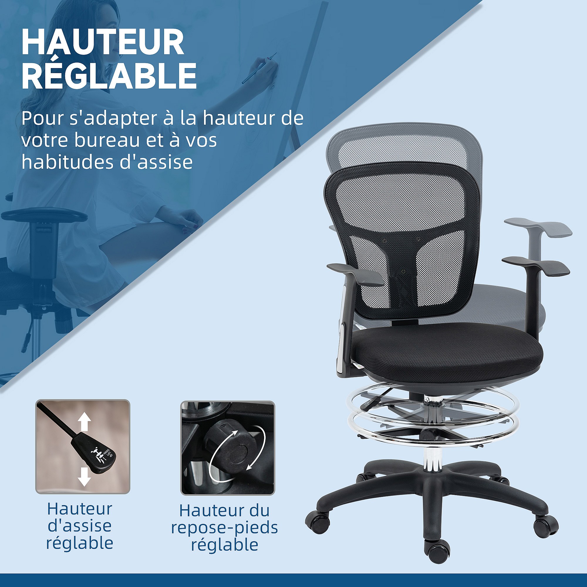 Fauteuil de bureau chaise de bureau assise haute réglable dim. 59L x 59l x 95-115H cm pivotant 360° maille respirante noir