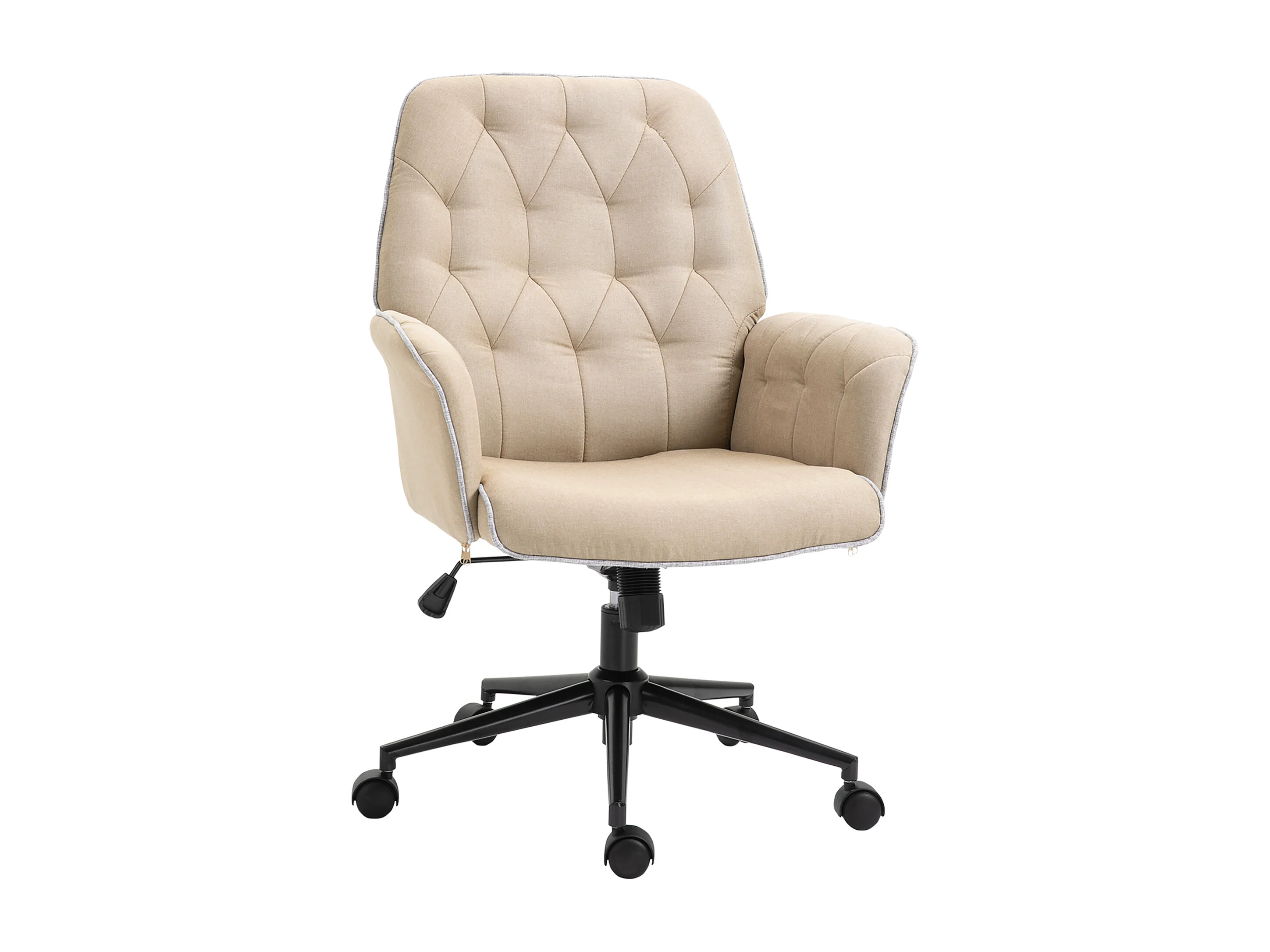 Fauteuil de bureau chaise de bureau hauteur réglable roulettes pivotant 360° tissu chanvre 69L x 66l x 89,5-97H cm beige