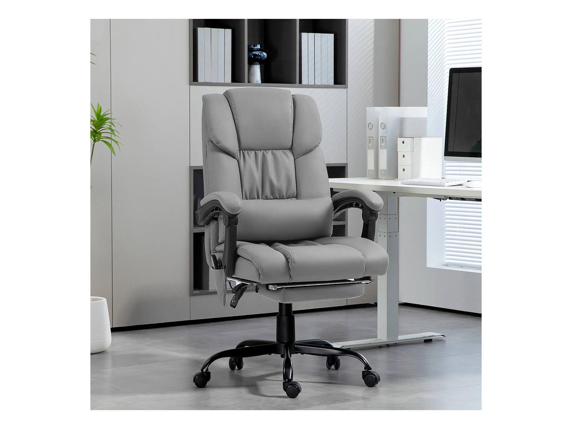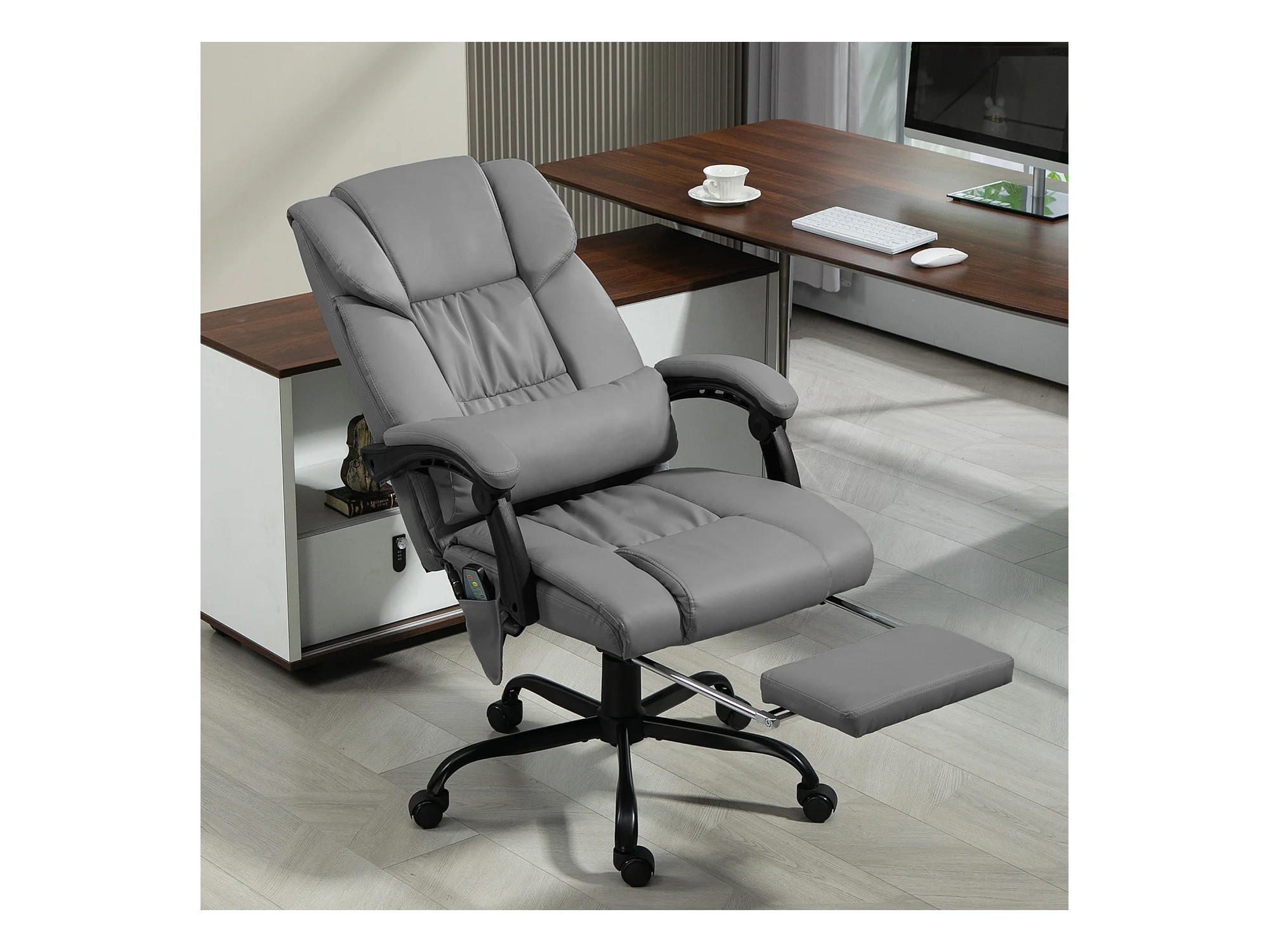 Fauteuil de bureau direction massant inclinable réglable - repose-pieds rétractable intégré - acier noir PU gris