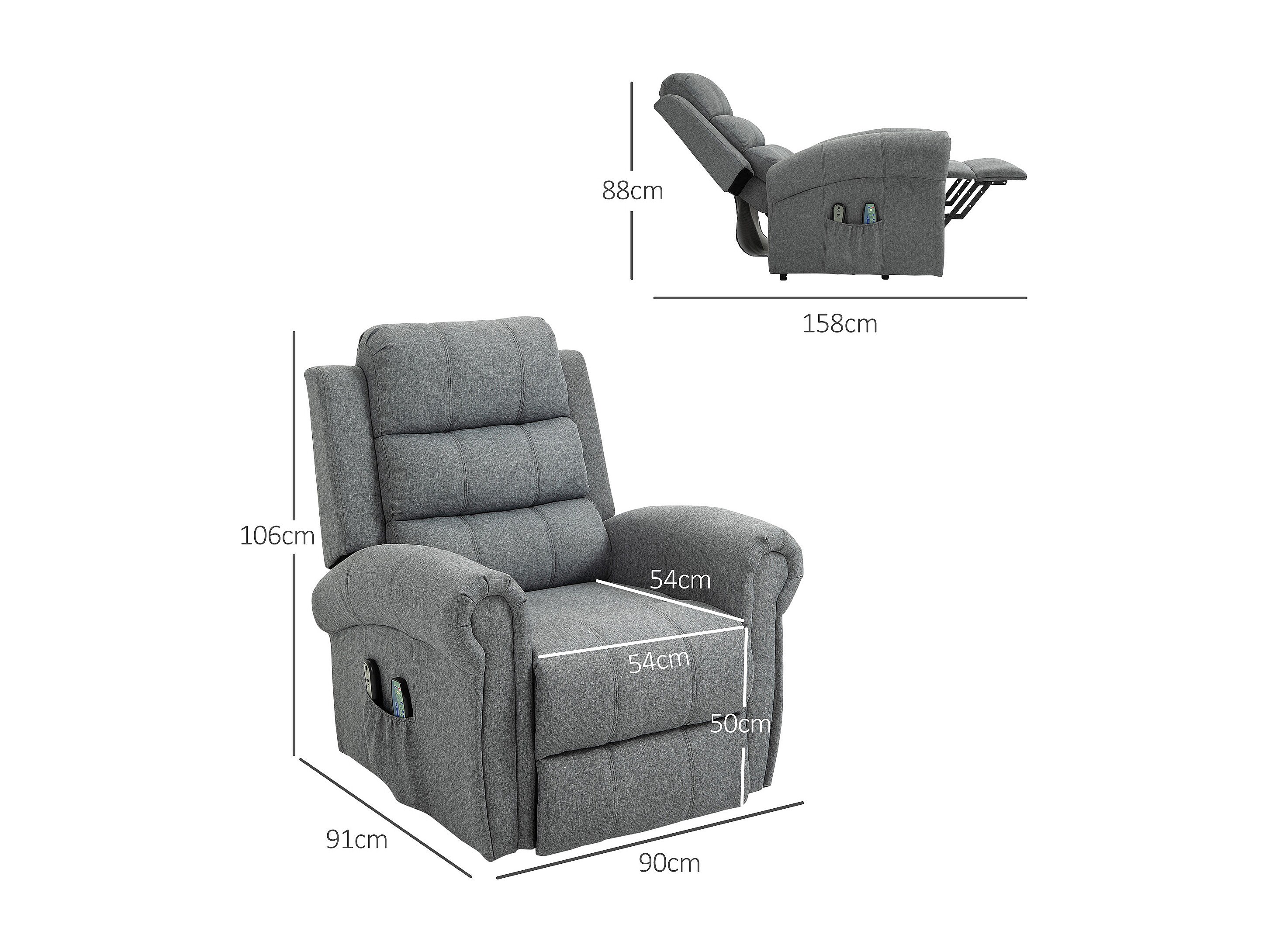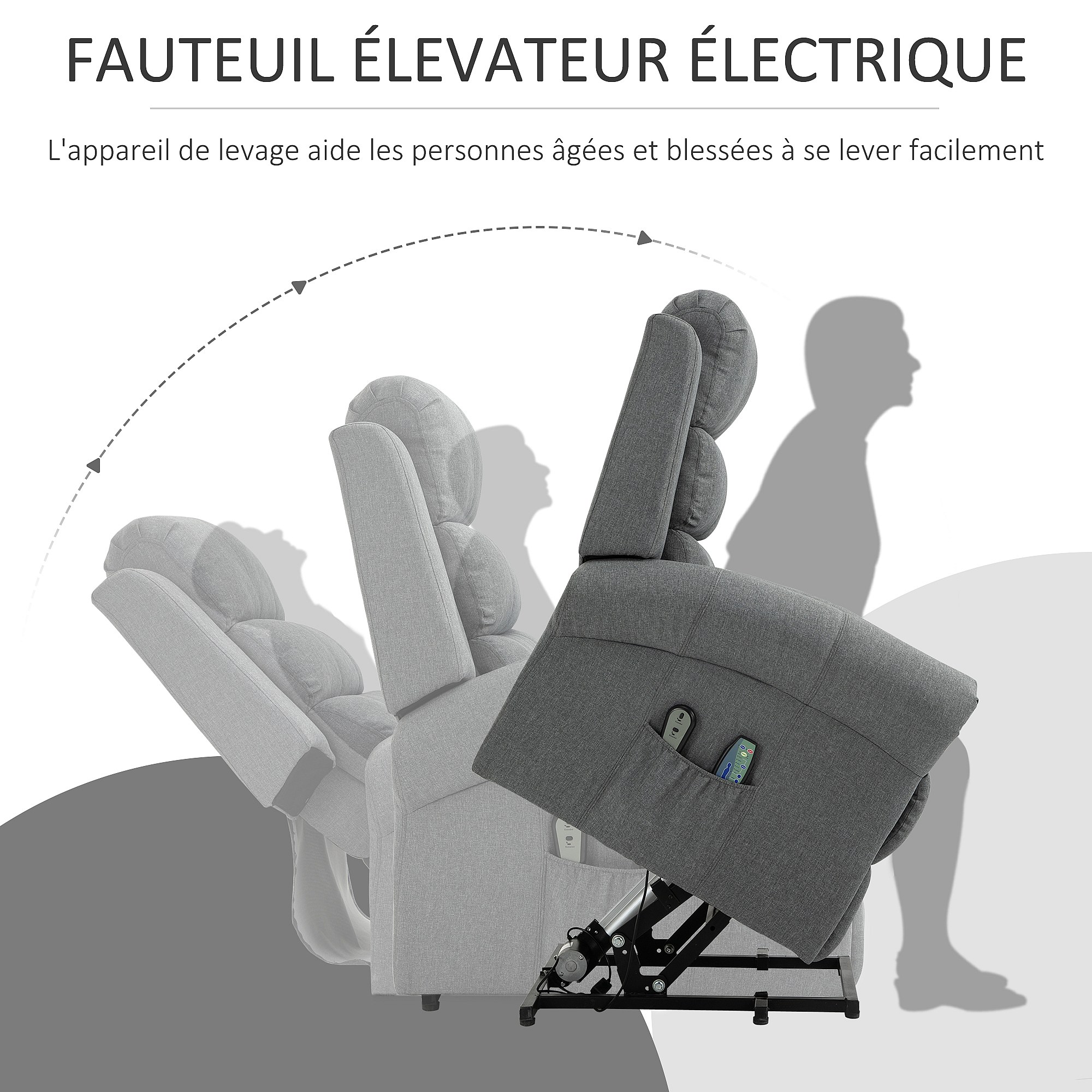 Fauteuil de massage fauteuil releveur électrique inclinaison réglable repose-pied ajustable lin gris chiné