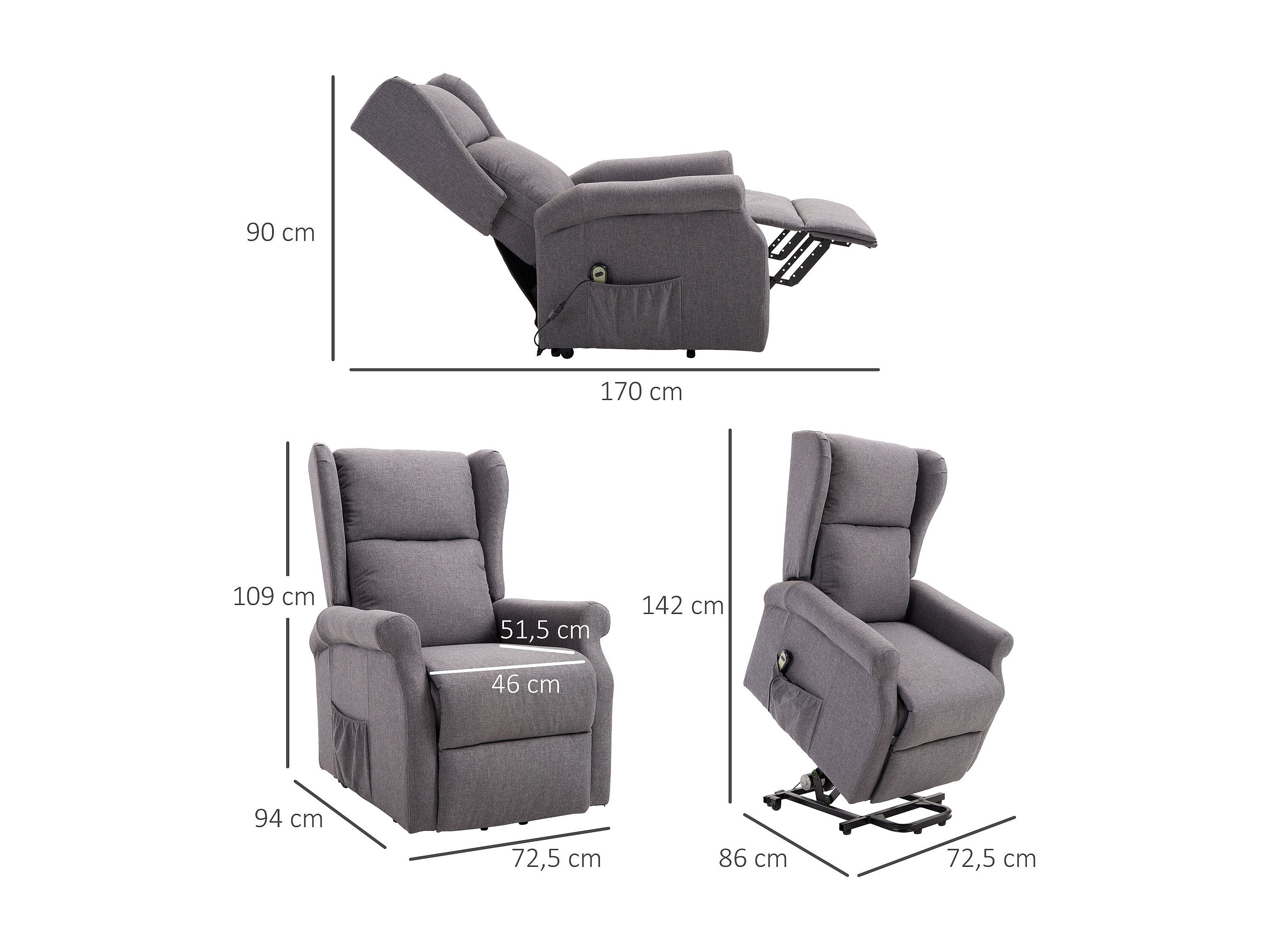 Fauteuil de relaxation électrique fauteuil releveur inclinable avec repose-pied ajustable lin gris chiné