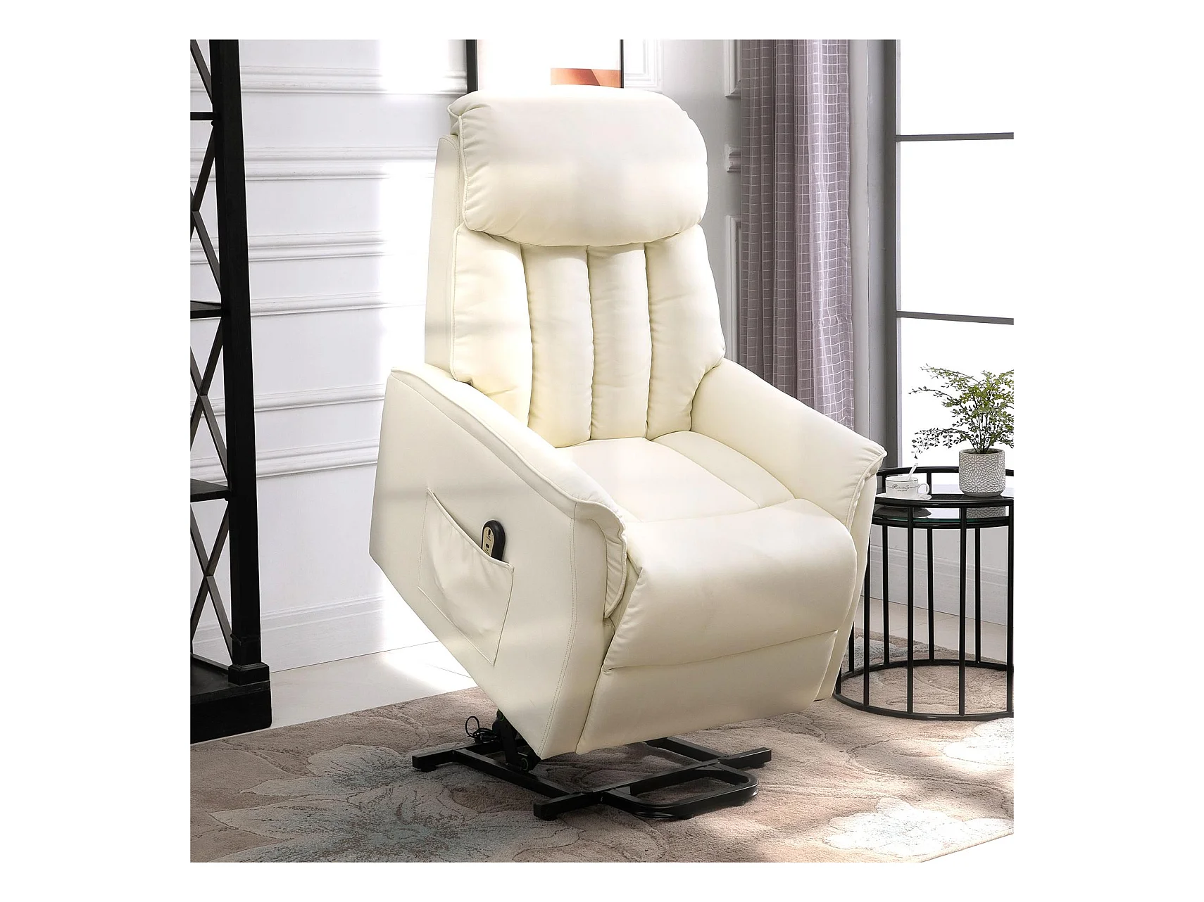 Fauteuil de relaxation électrique fauteuil releveur inclinable avec repose-pied ajustable revêtement synthétique tissu crème