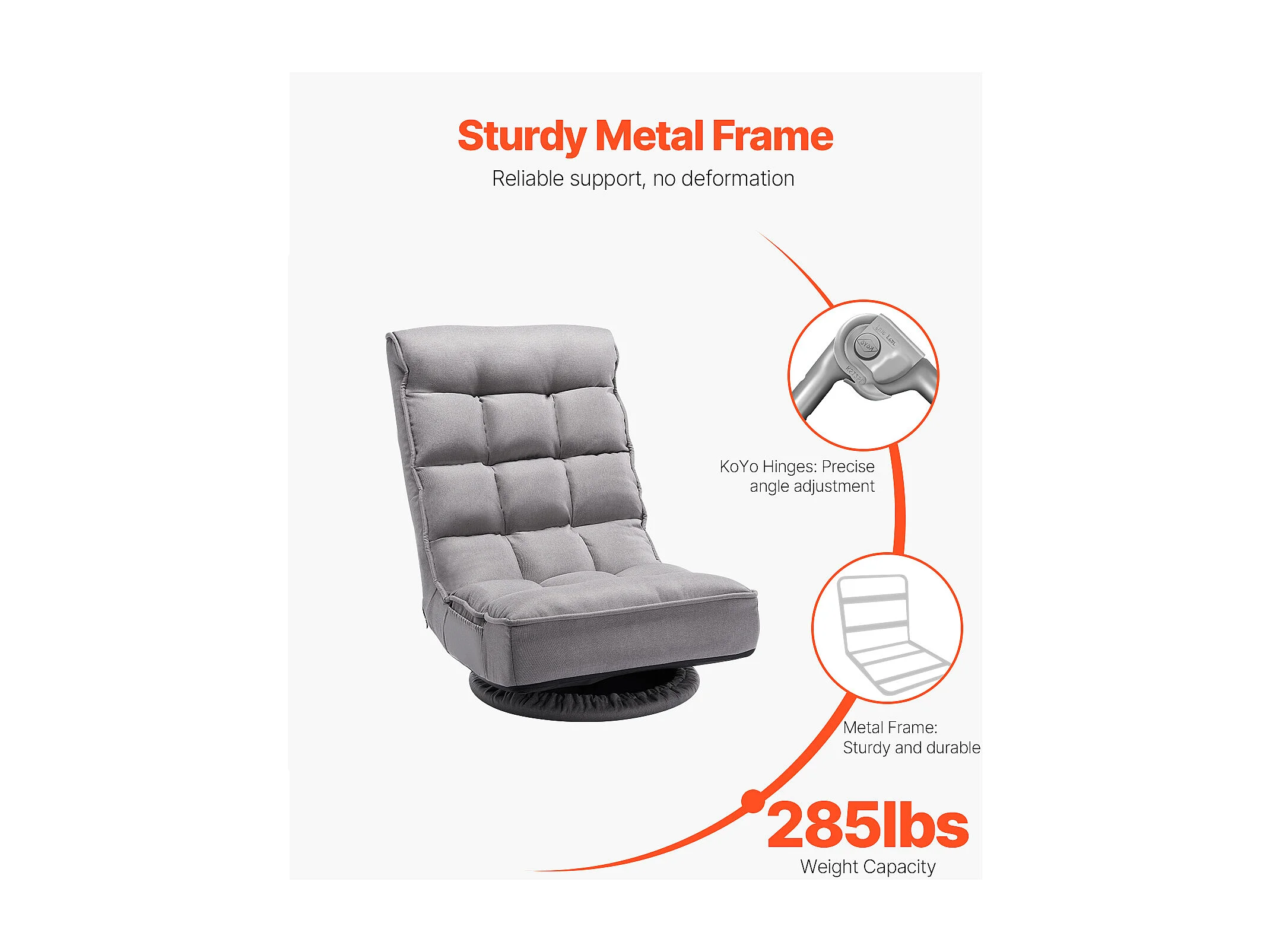 Fauteuil de Sol SucceBuy avec 4 Positions Réglables et Inclinable Pliable Pivotante à 360°