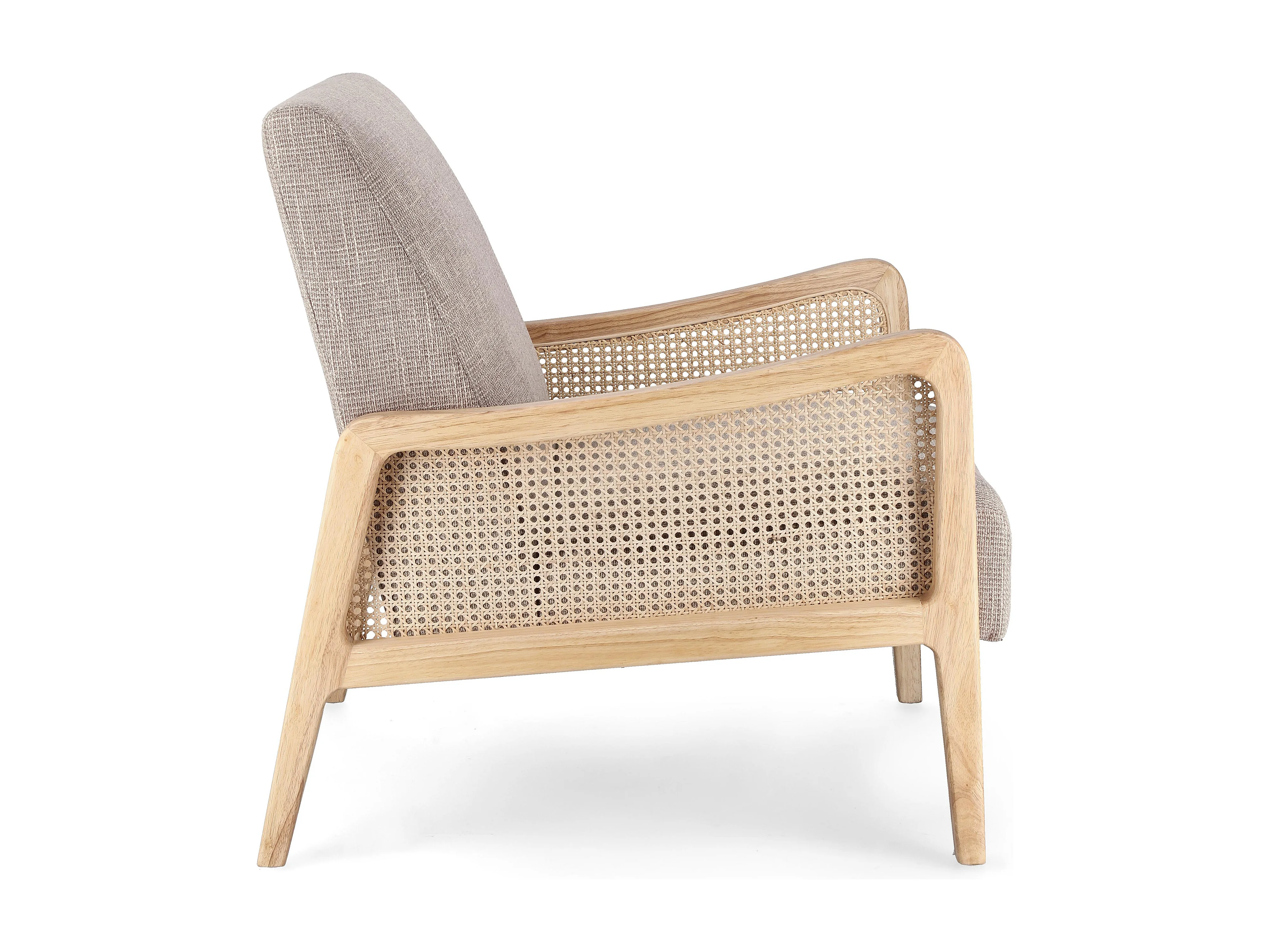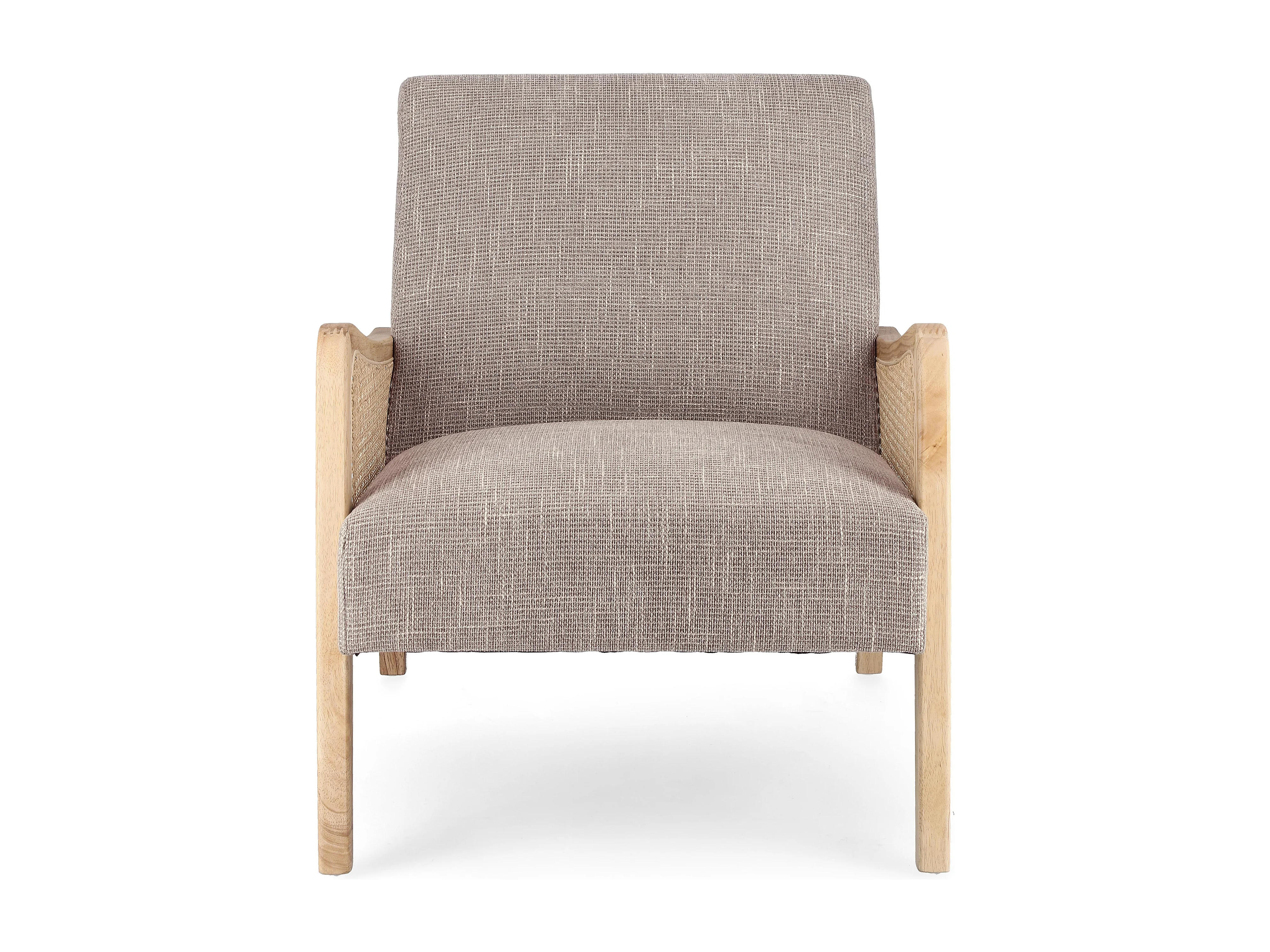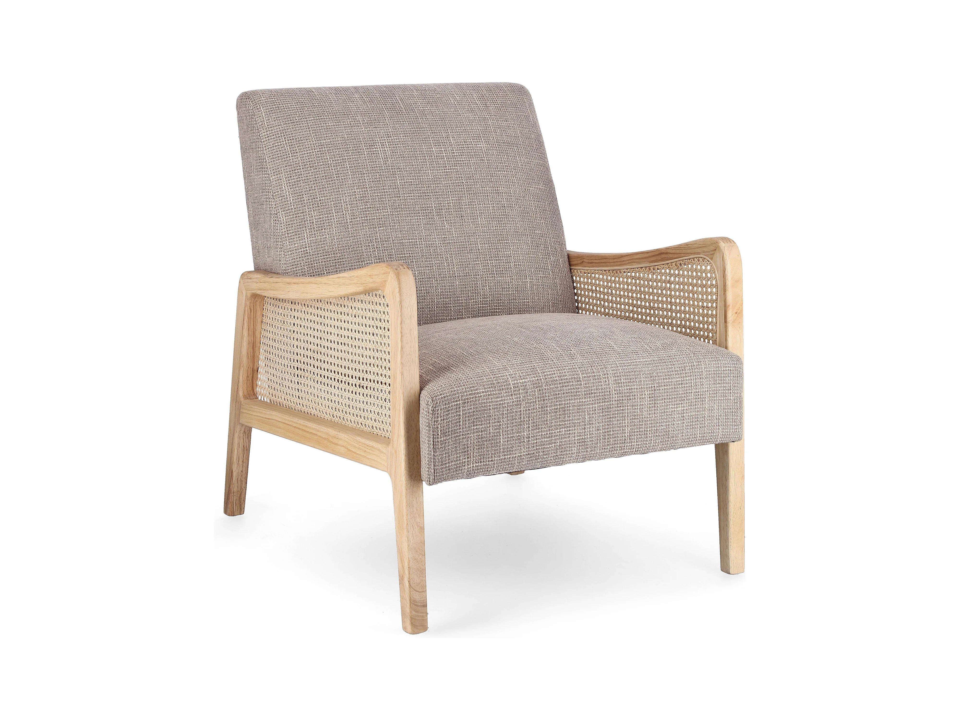 Fauteuil en bois de pin et rotin assise tissu gris Denvar 68cm