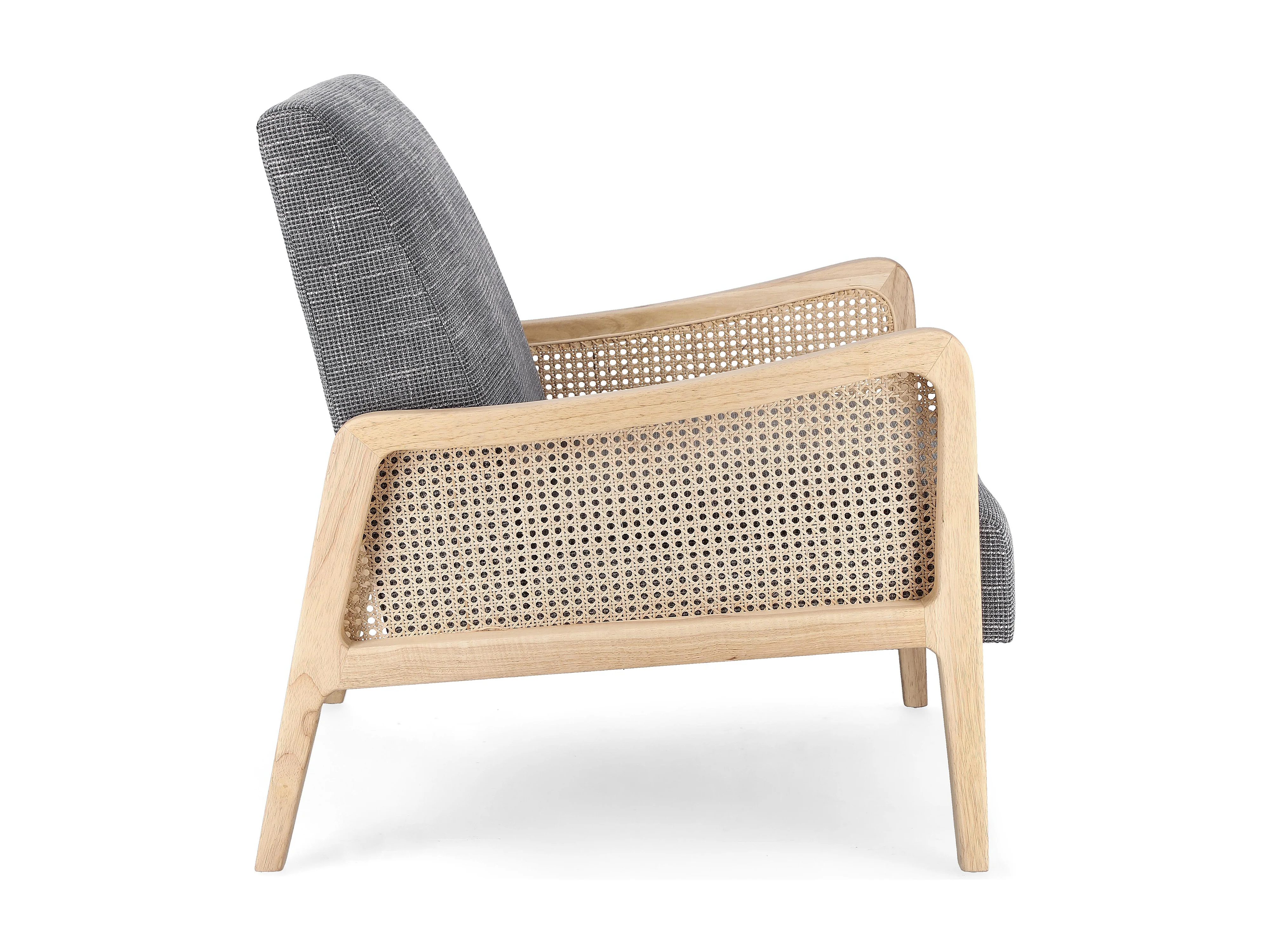 Fauteuil en bois de pin et rotin assise tissu gris Denvar 68cm