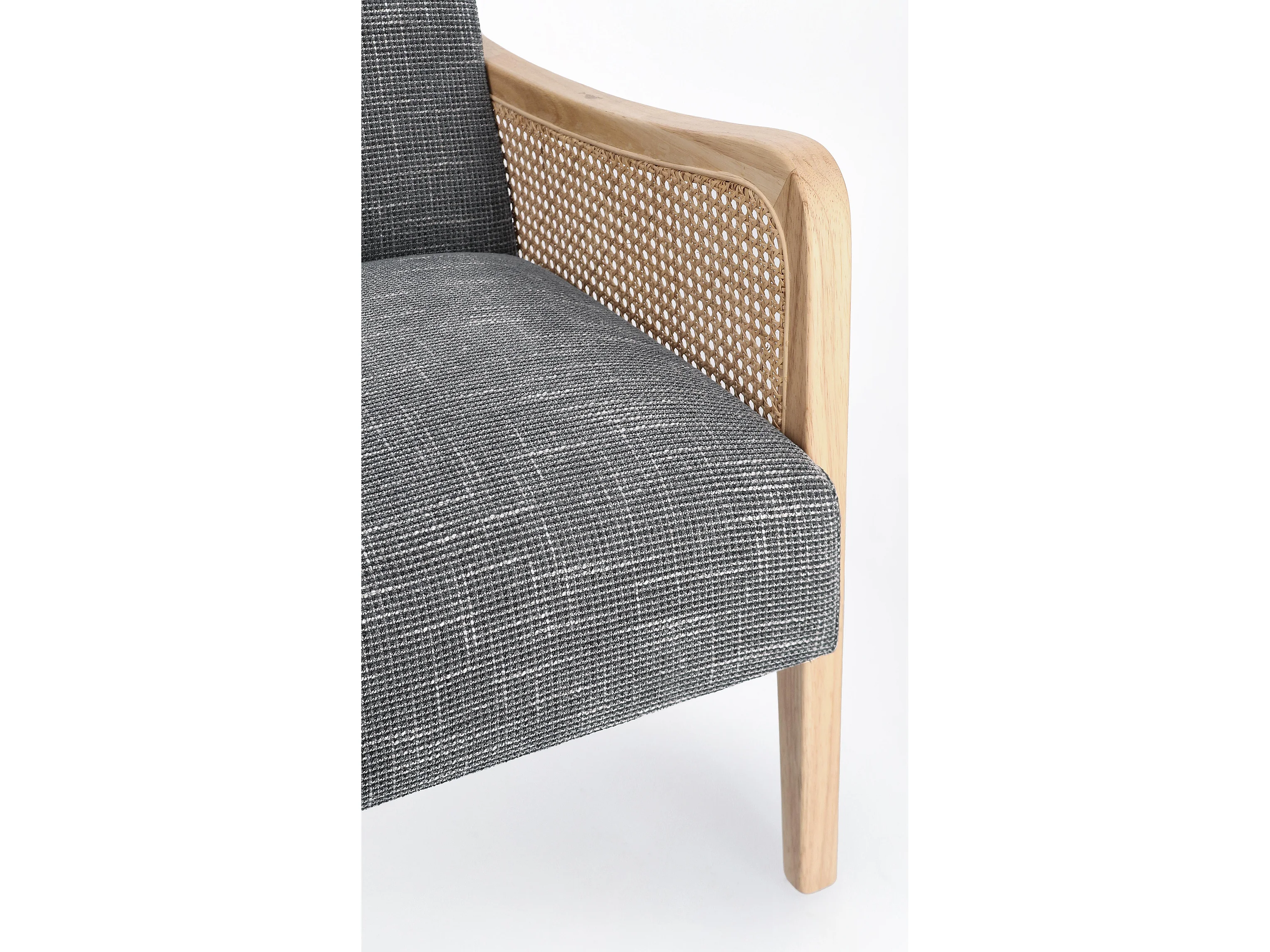 Fauteuil en bois de pin et rotin assise tissu gris foncé Denvar 68cm