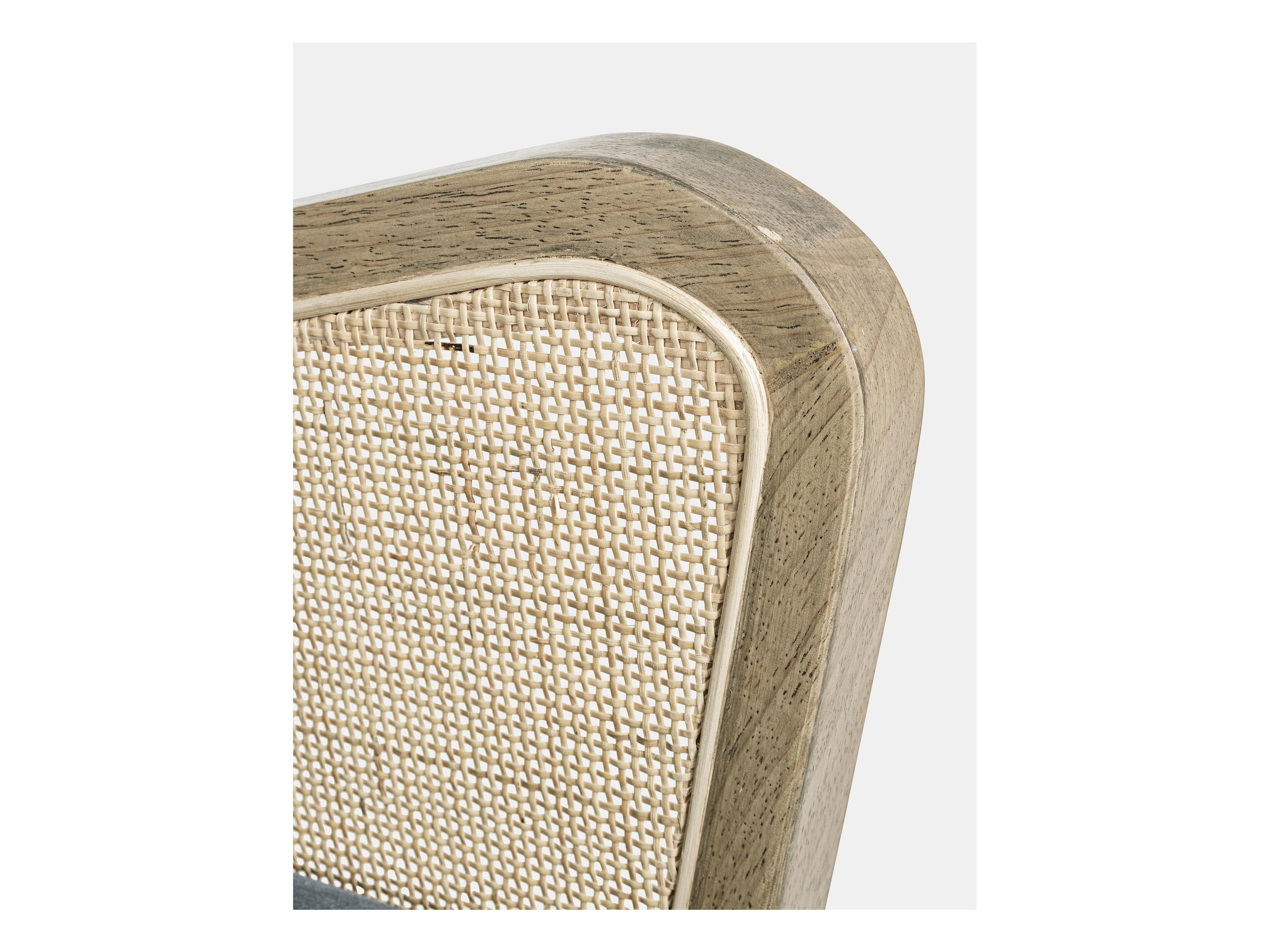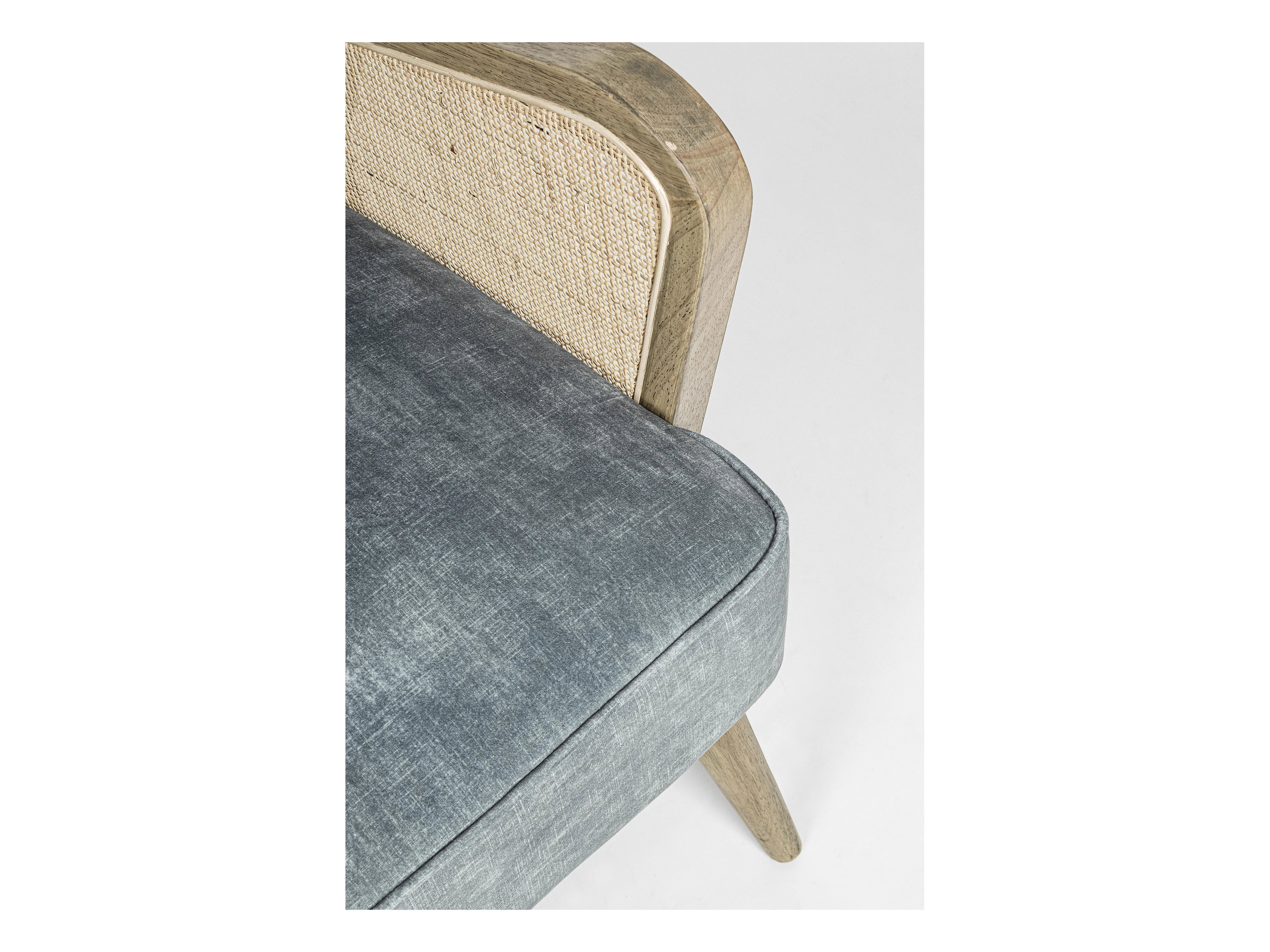 Fauteuil en bois naturel et rotin assise velours bleu Rucha 64cm