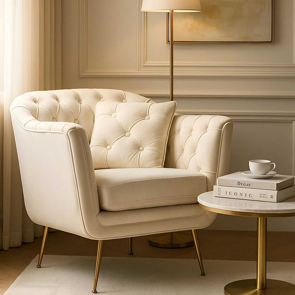 Fauteuil en tissu capitonné Budapest 88 x 83 x 91 cm