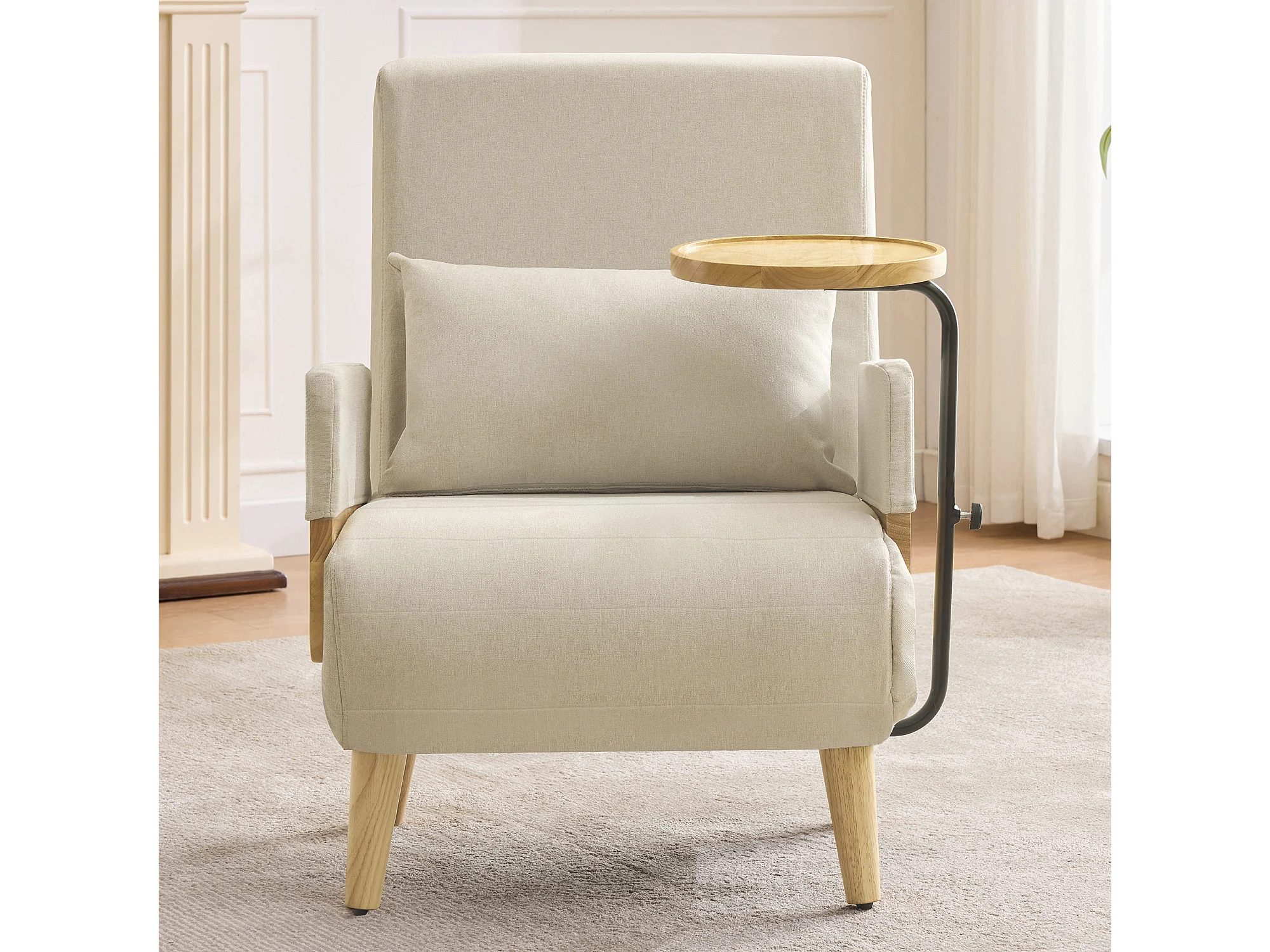 Fauteuil moderne 62x67x88cm - Fauteuil convertible 3 en 1 - Avec fonction couchage - Fauteuil pliant rembourré - Beige