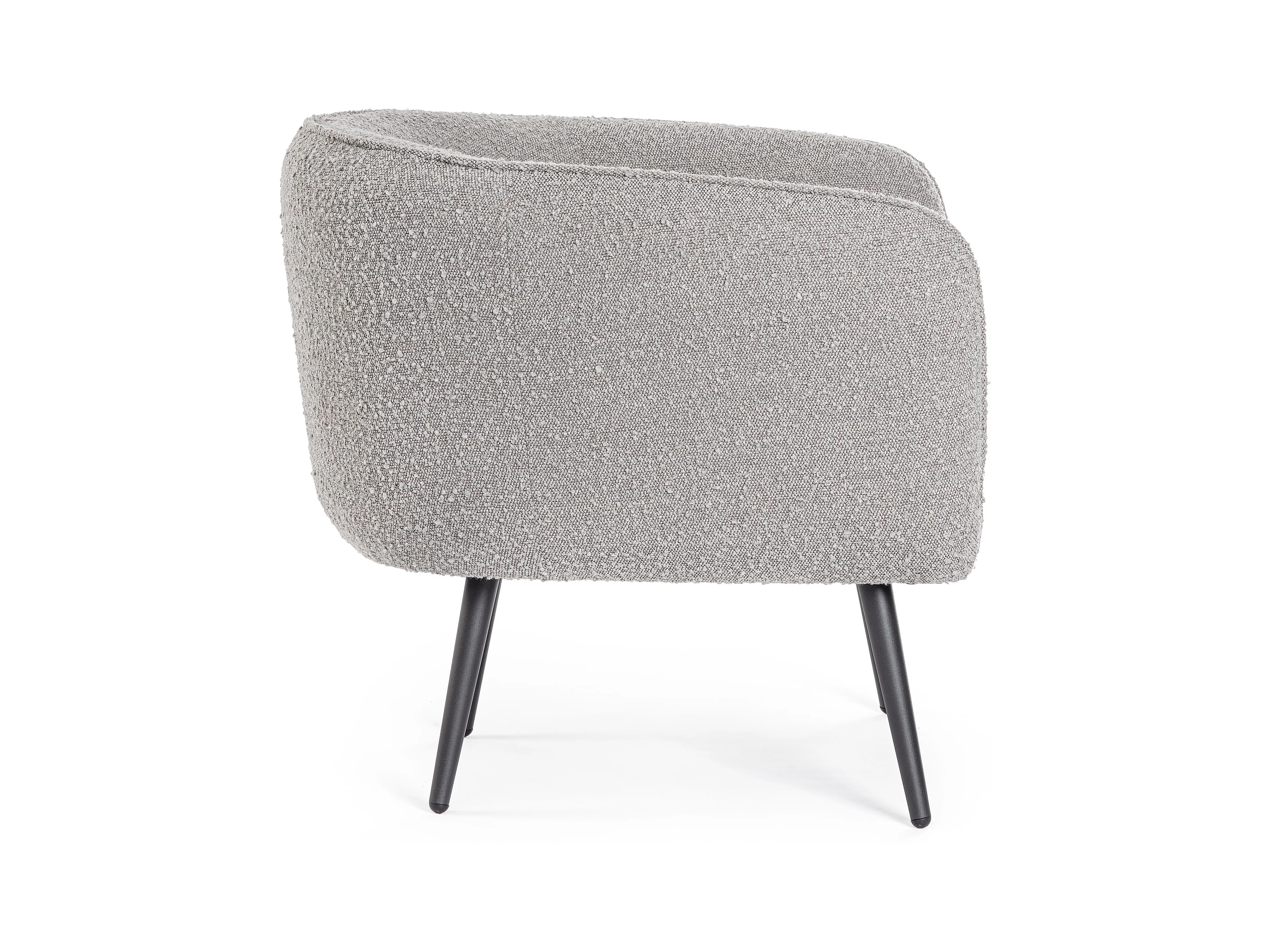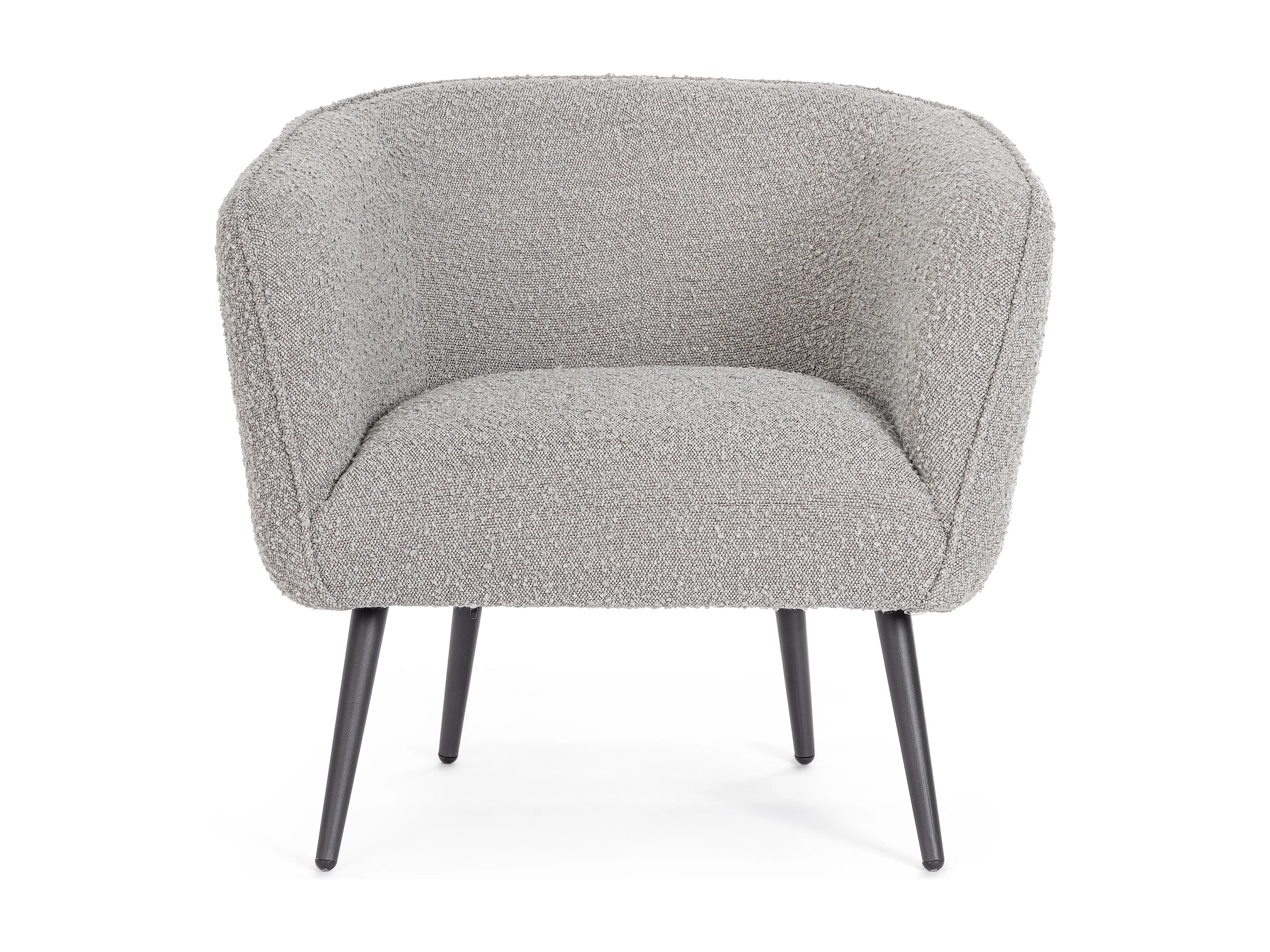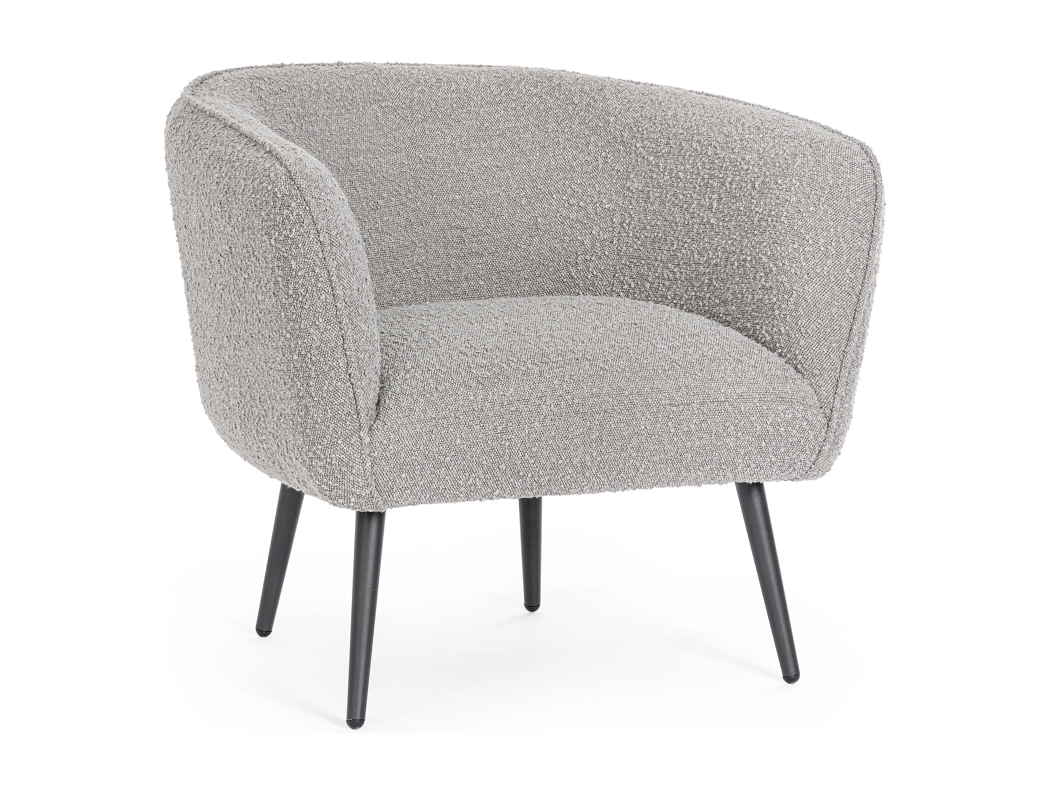 Fauteuil moderne tissu doux bouclé gris et pieds acier noir Klody 78cm