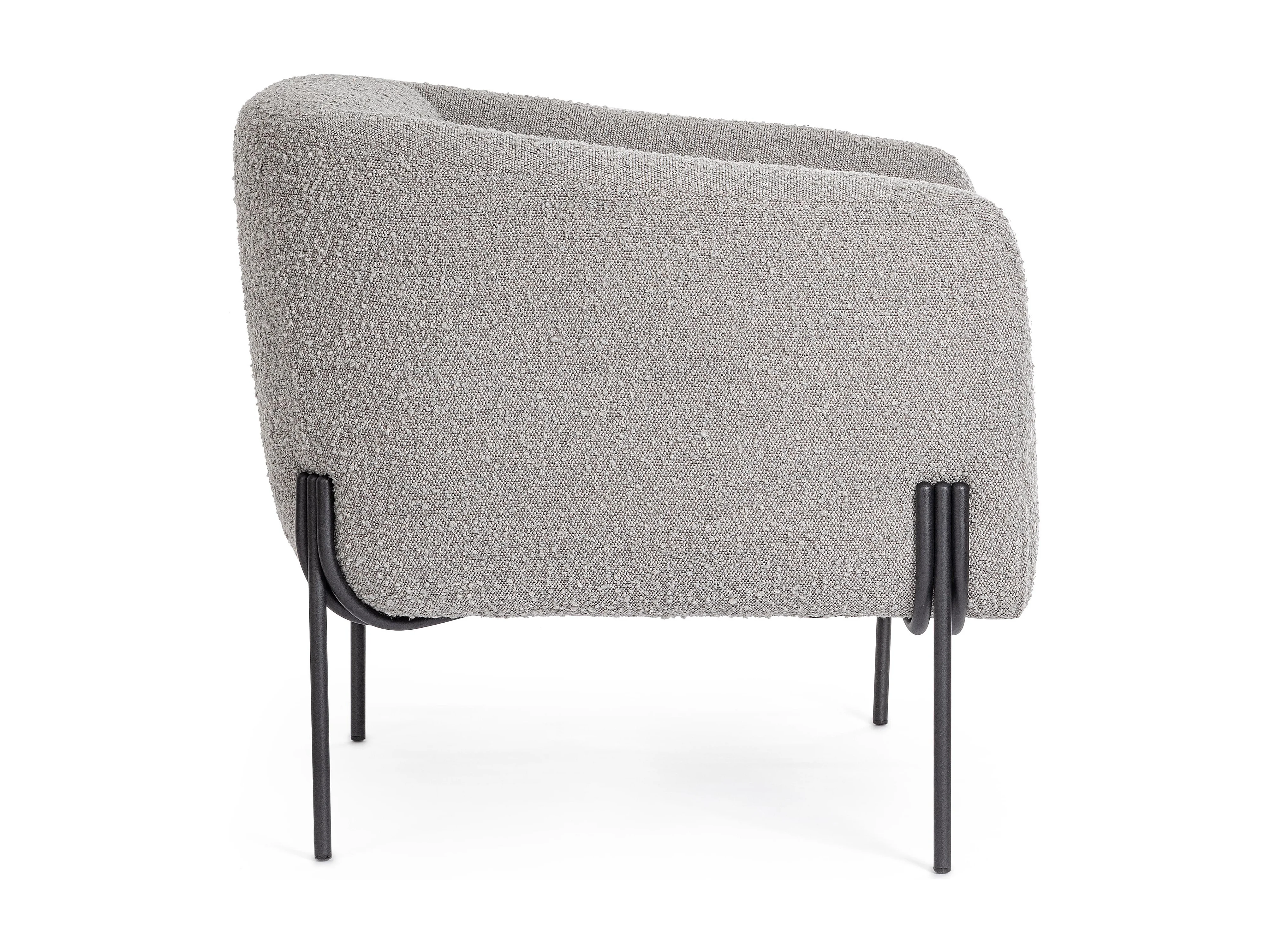 Fauteuil moderne tissu doux bouclé gris et pieds acier noir Klody 78cm
