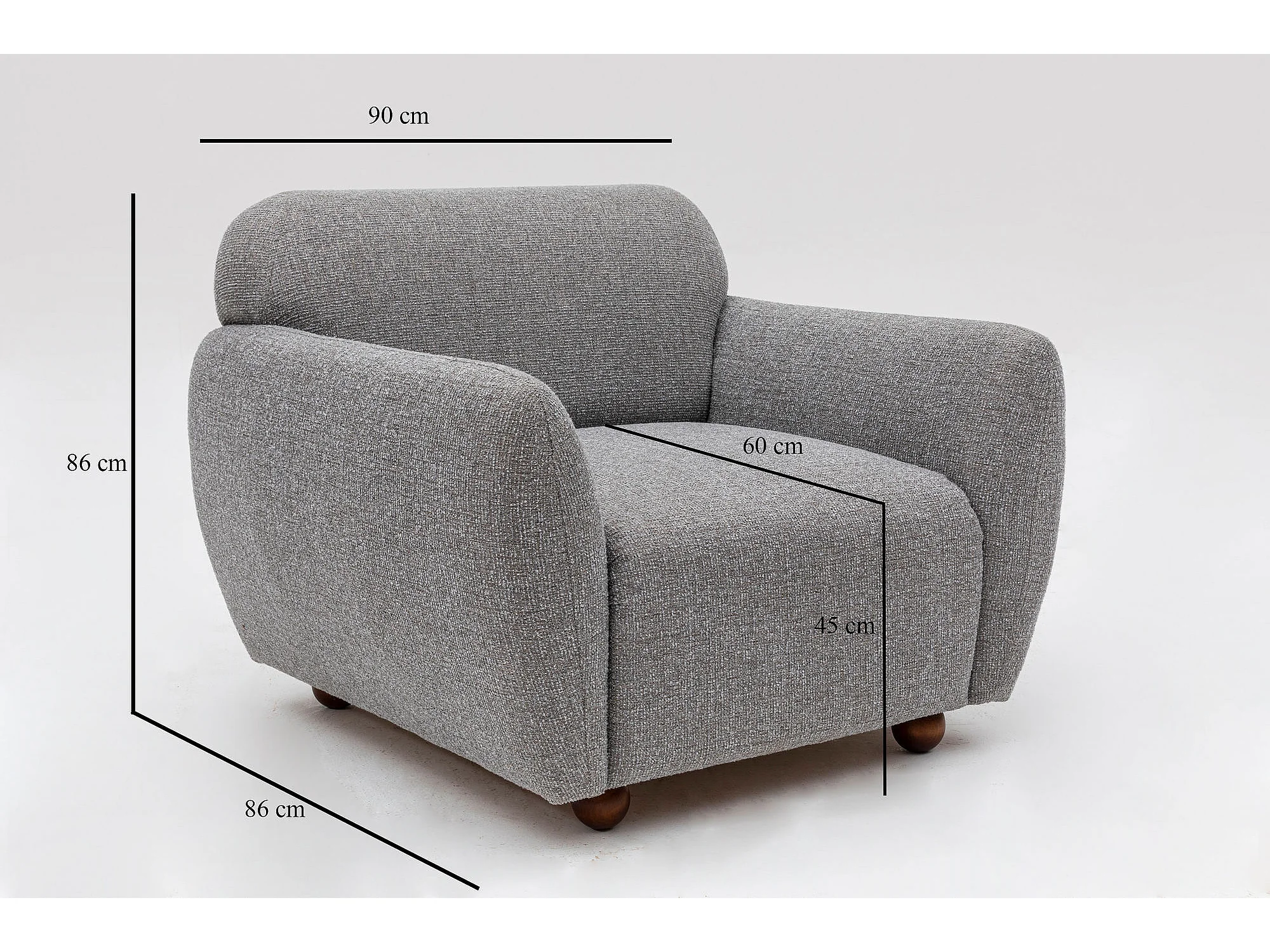 Fauteuil 1 place tissu gris foncé Kandy 82cm