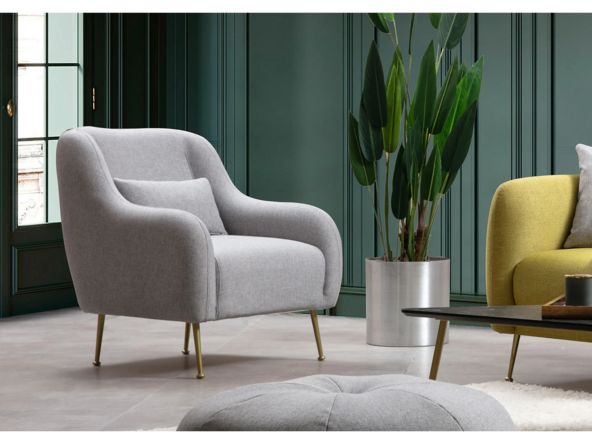 Fauteuil moderne tissu gris et piéds métal doré Kezila 78cm