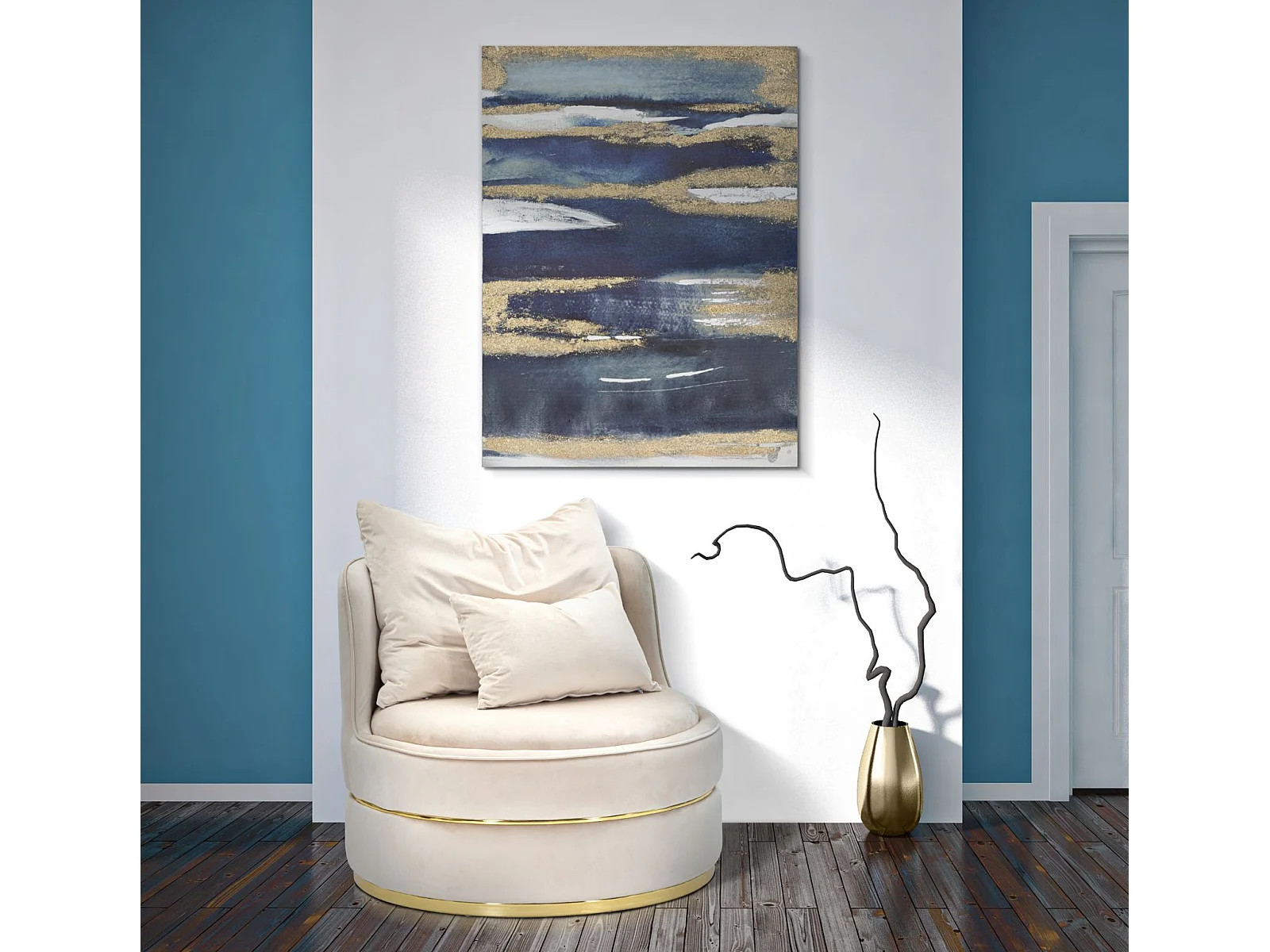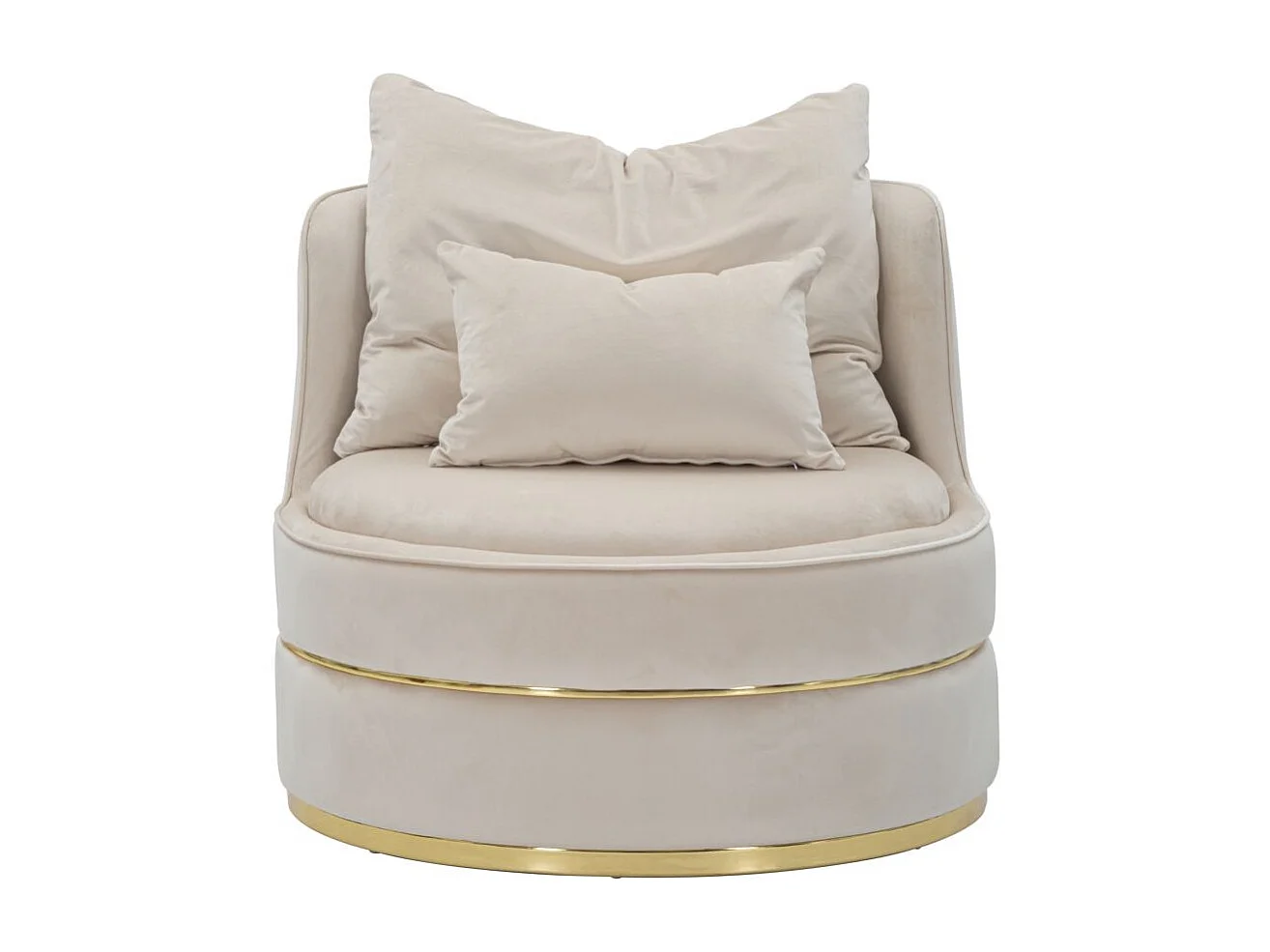 Fauteuil Paris Space Crème/Or en Tissu Rembourré avec Décorations Dorées