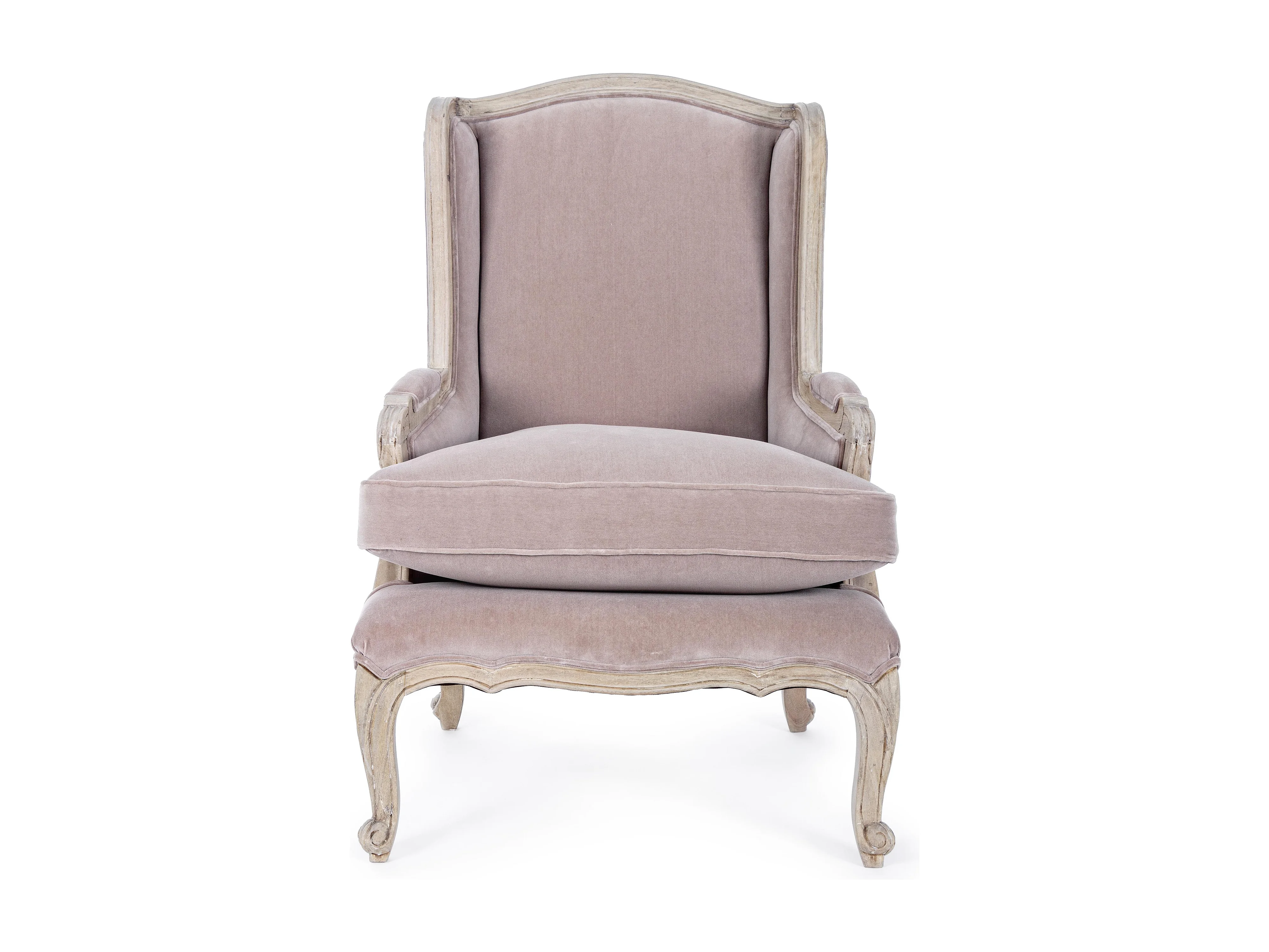Fauteuil polyester rose et pieds en bois de manguier Luna