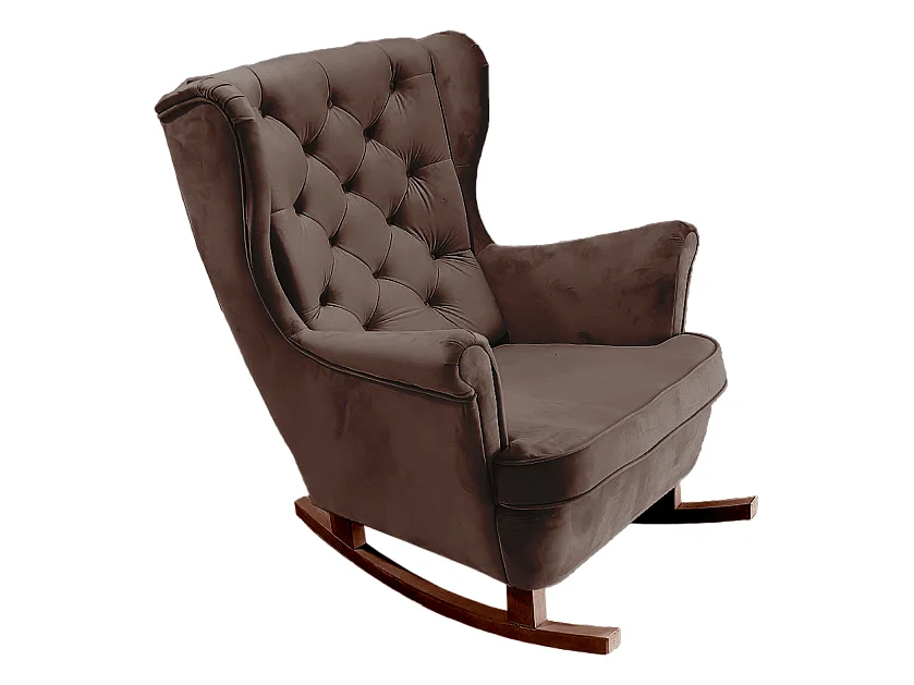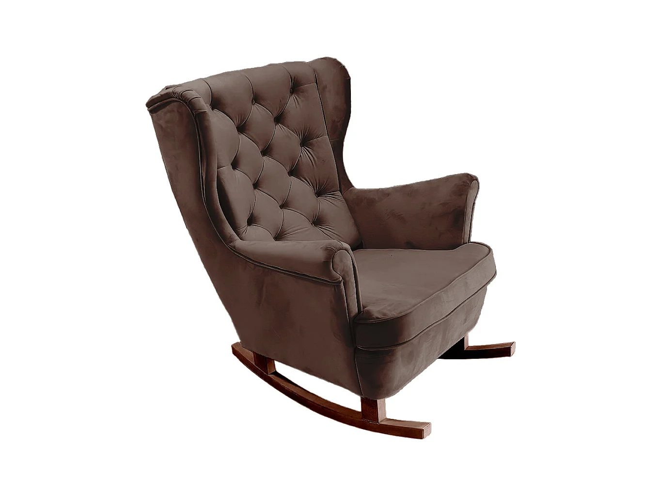 Fauteuil à Bascule - Rocking chair - Dossier Capitonné Pieds en Bois - Marron