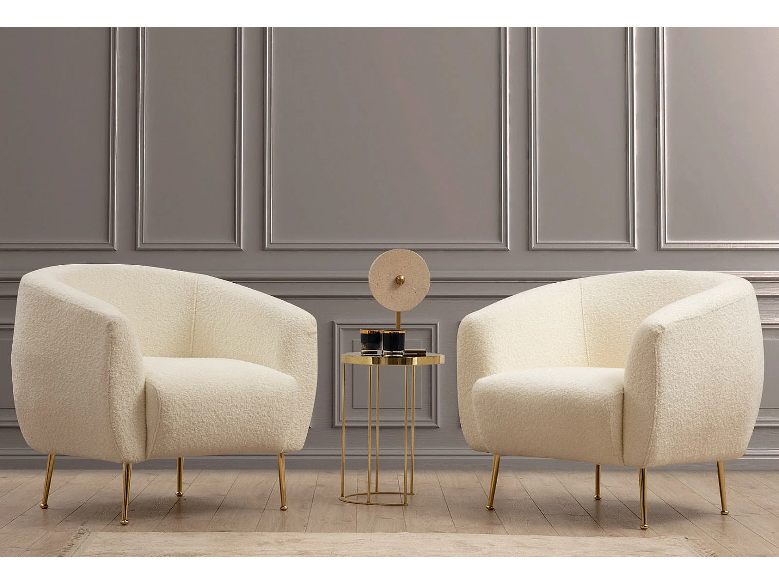 Fauteuil tissu coton bouclé ultra doux crème Tazany 70cm