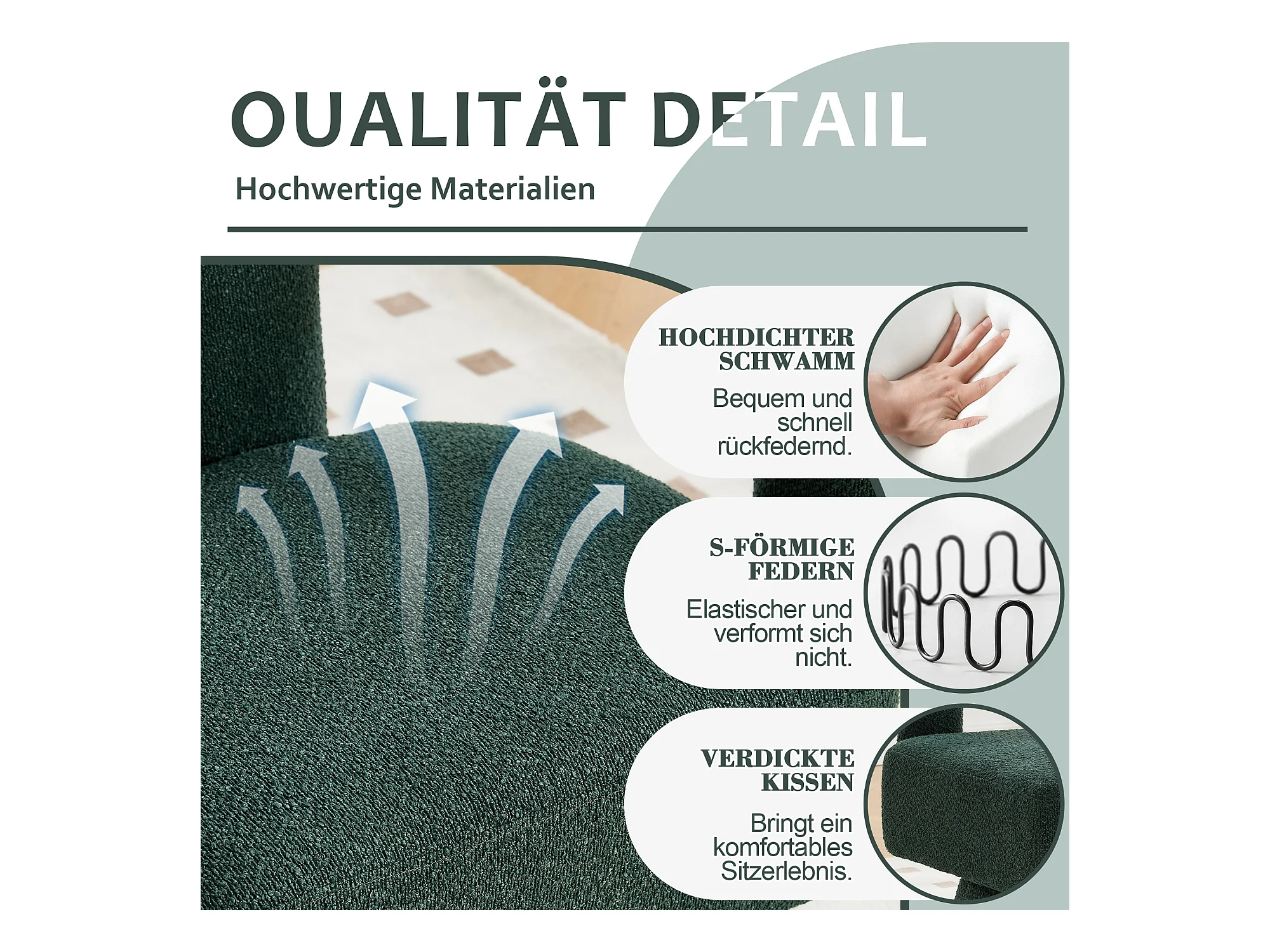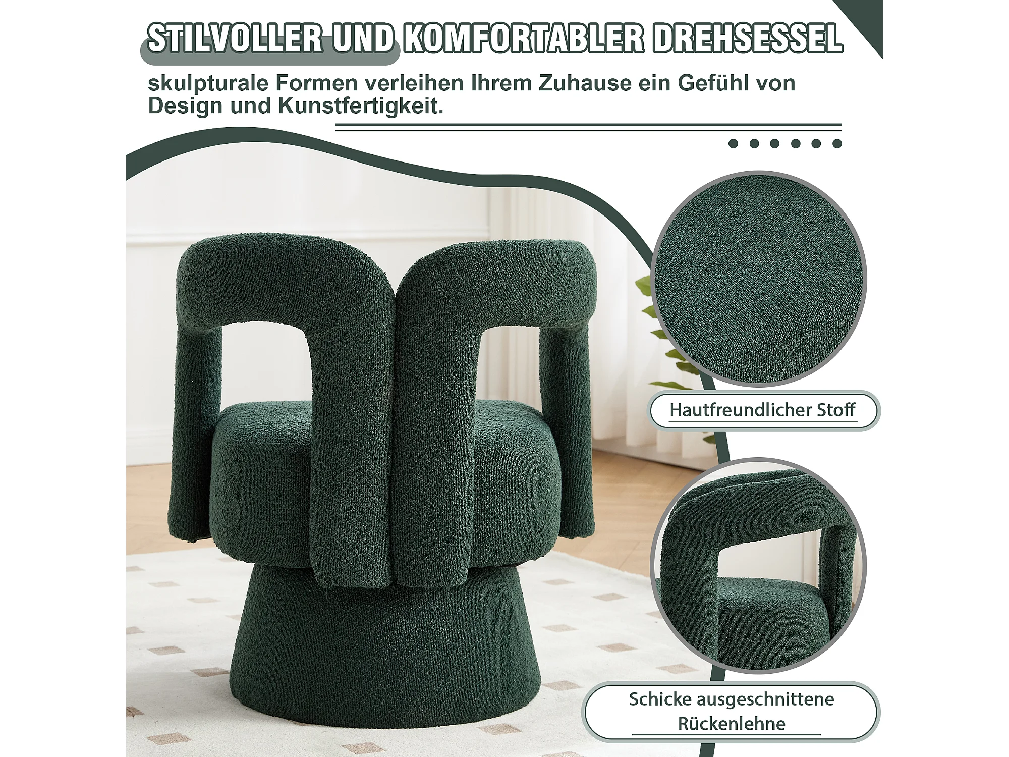 Fauteuils d'appoint pivotants à 360 degrés - 67 x 55 x 74 cm - avec coussins larges - Boucle - vert foncé