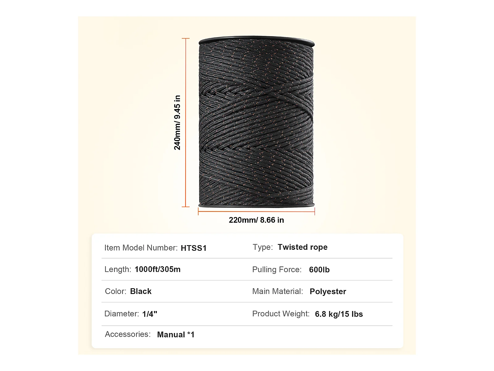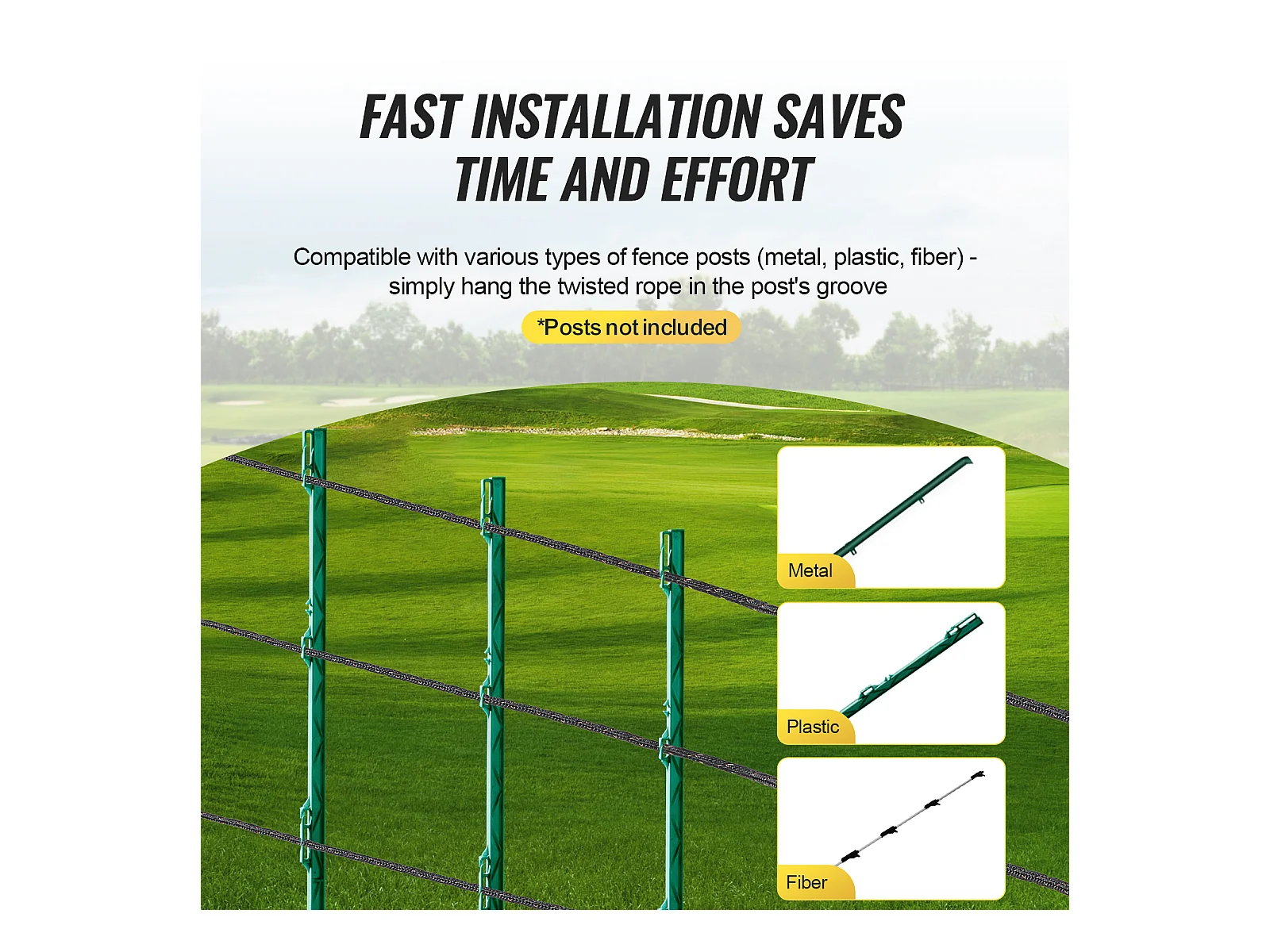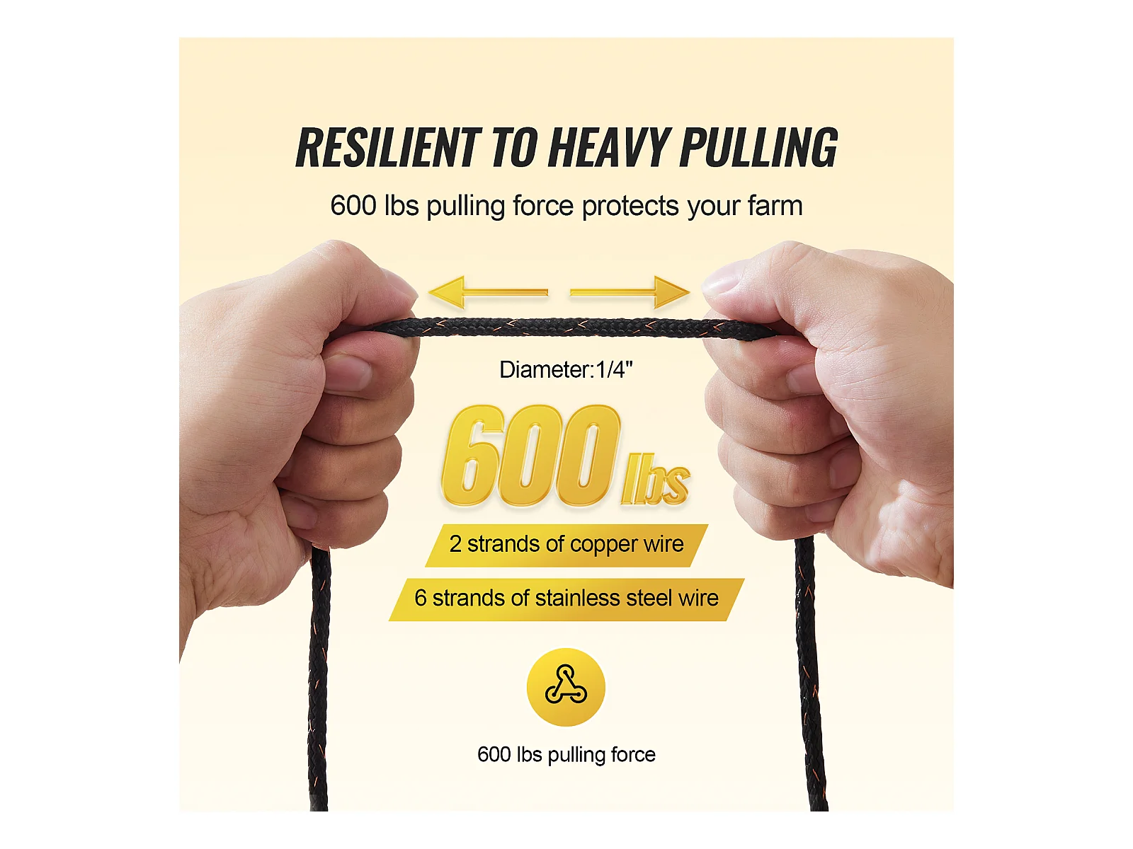 Fil de Clôture SucceBuy, Clôture Électrique 305 m, Corde en Fibre de Polyester Tissée et Fil de Cuivre à 2 Brins, pour Chevaux, Bovins, Bétail
