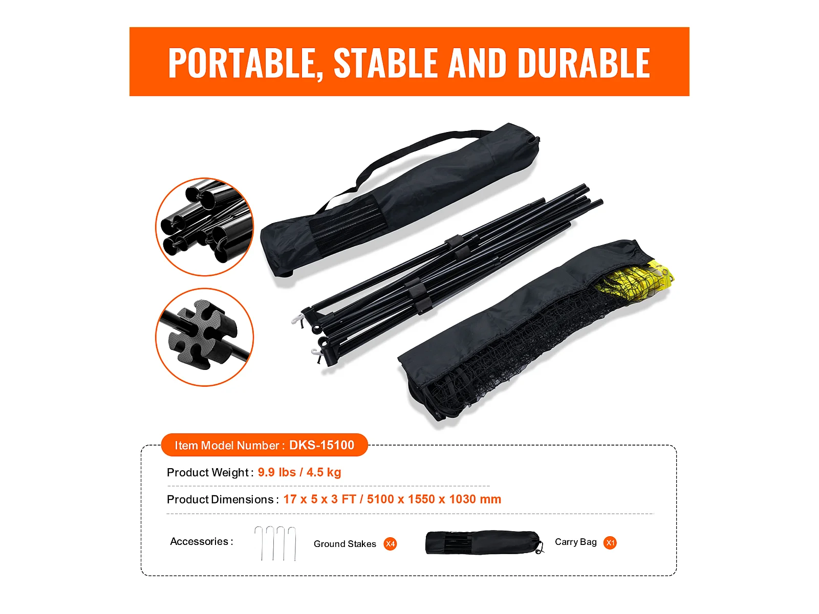 Filet de Badminton, SucceBuy Ensemble de Filets de Badminton Portables 510 cm pour Tennis, Pickleball et Volley-ball