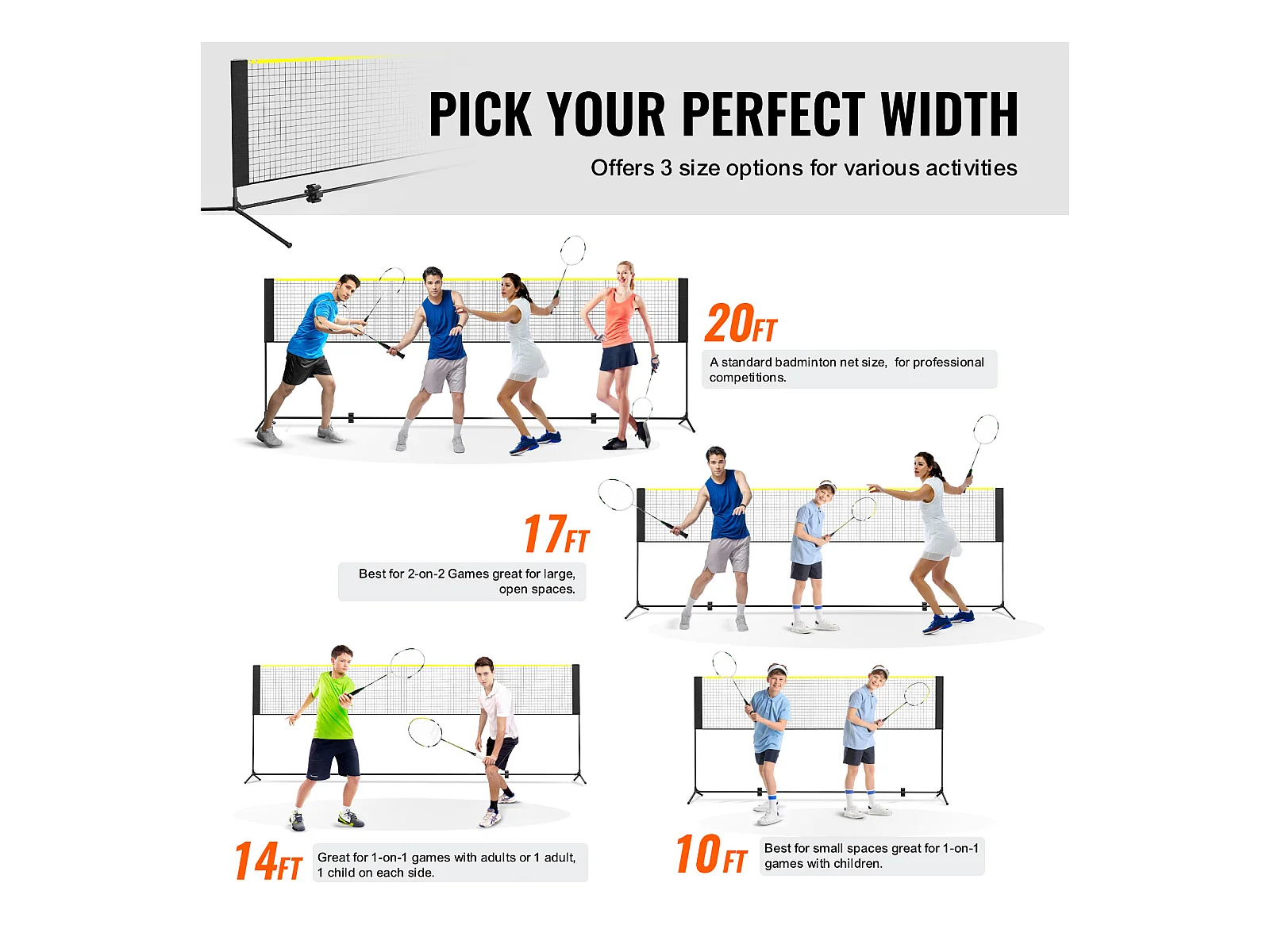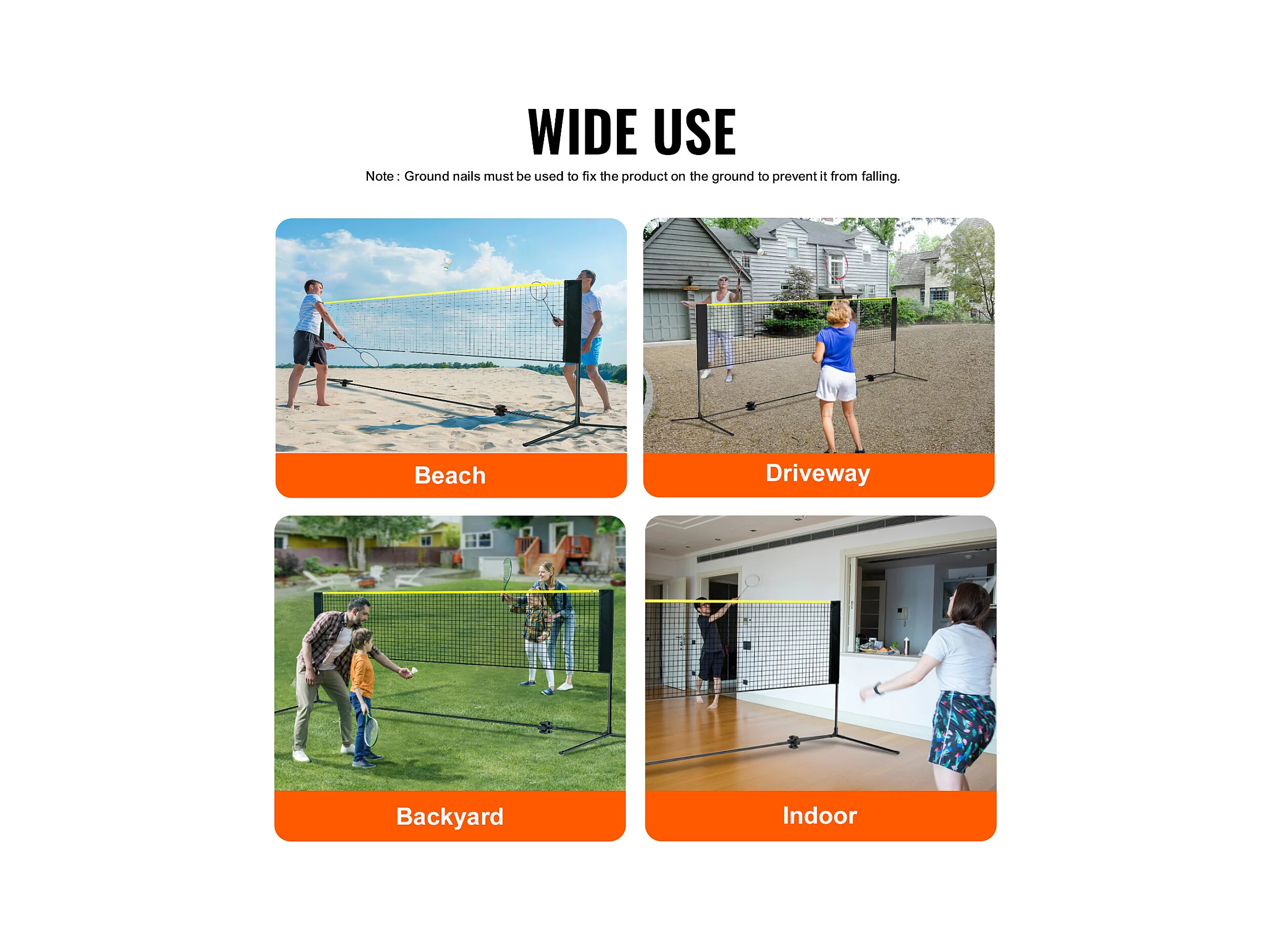Filet de Badminton SucceBuy de Ensemble, 427 cm, Filet de Tennis de Pickleball de Volley-Ball Extérieur Portable