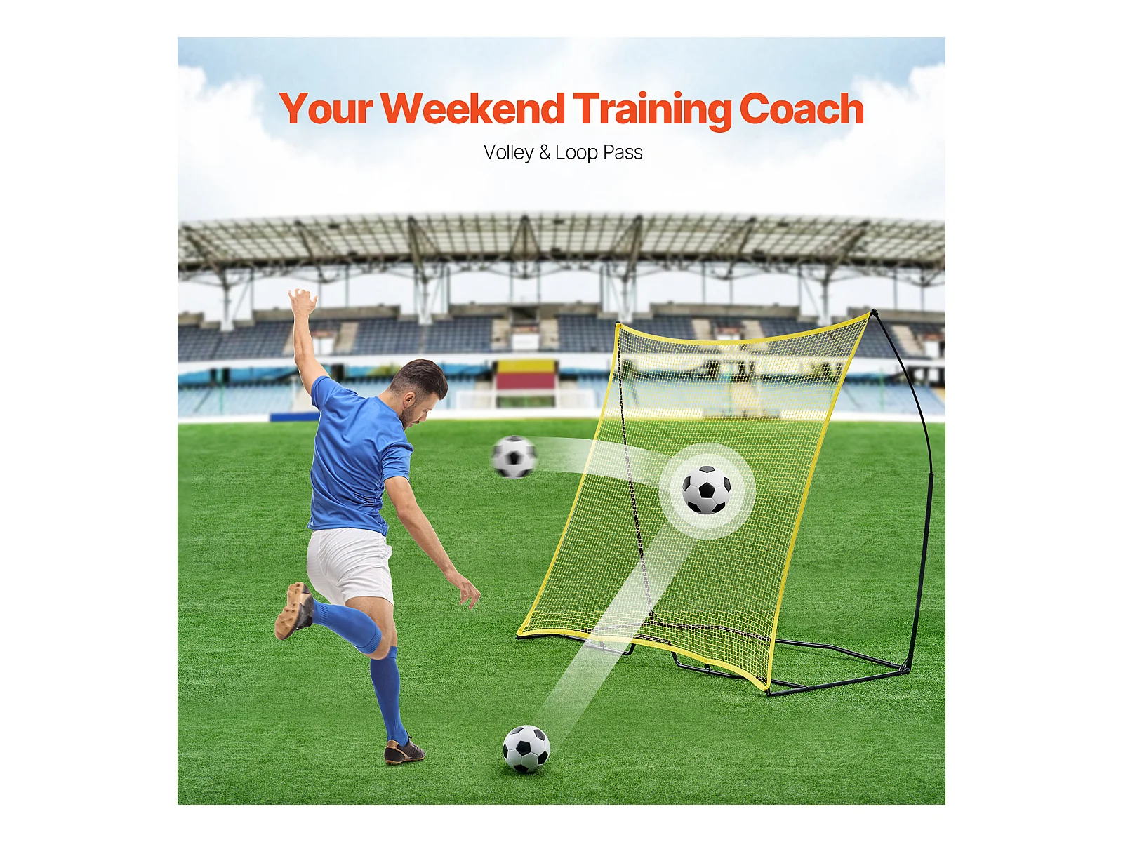 Filet de rebond de football - rebondisseur de football angle réglable - dim. 184L x 123H cm - jaune noir