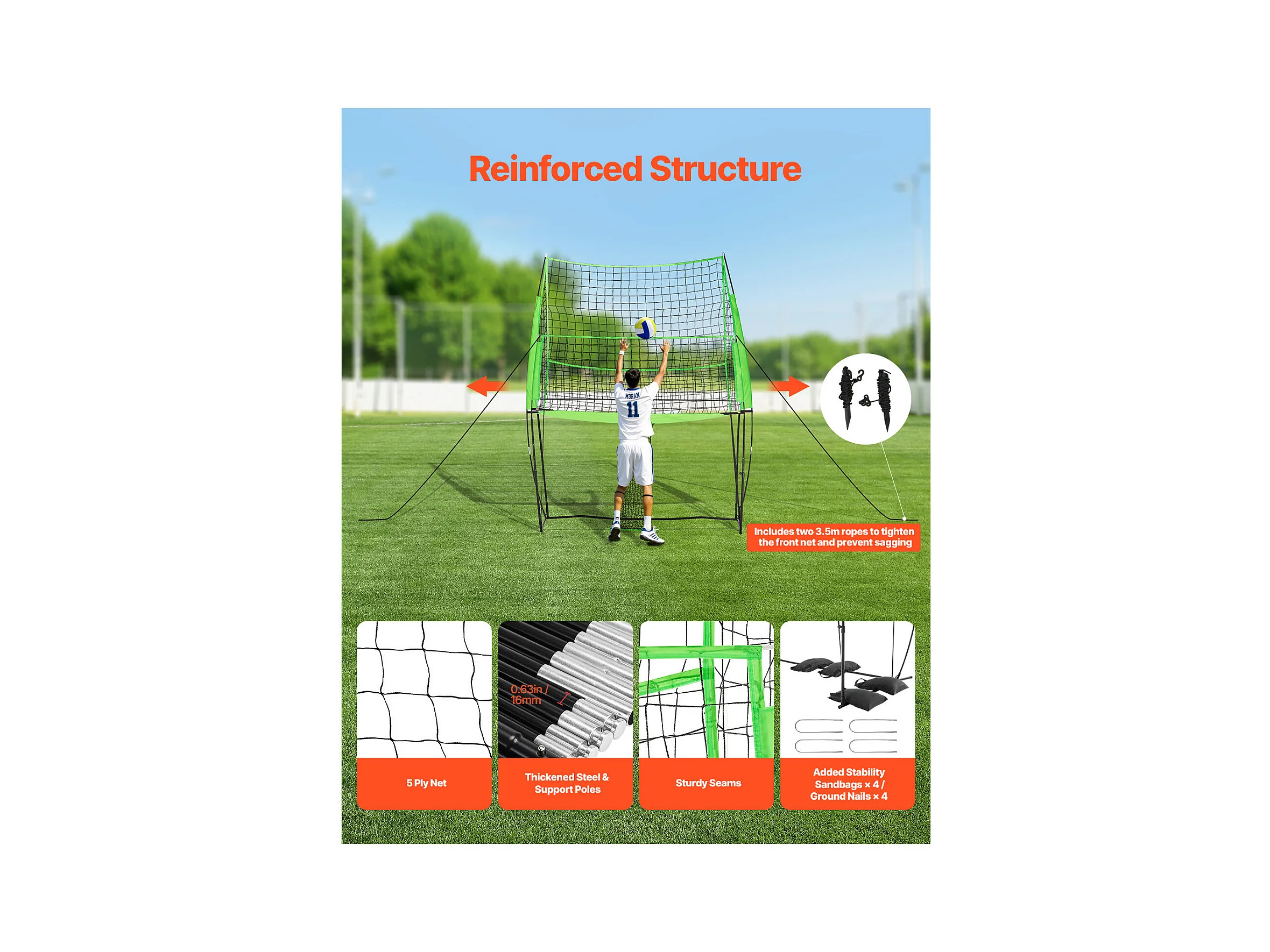 Filet de Rebond de Baseball SucceBuy 152.4 x 213.4cm Lacrosse, Filet de Rebond de Softball Réglable