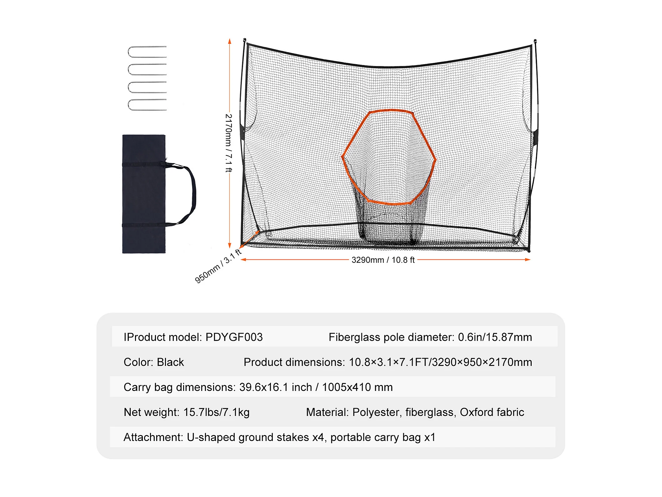 Filet de Baseball SucceBuy, 210 x 120cm, Filet de Frappeur Portable avec Sac de Transport et Piquets de Sol, Protection de Lancer pour Cage de Frappeur