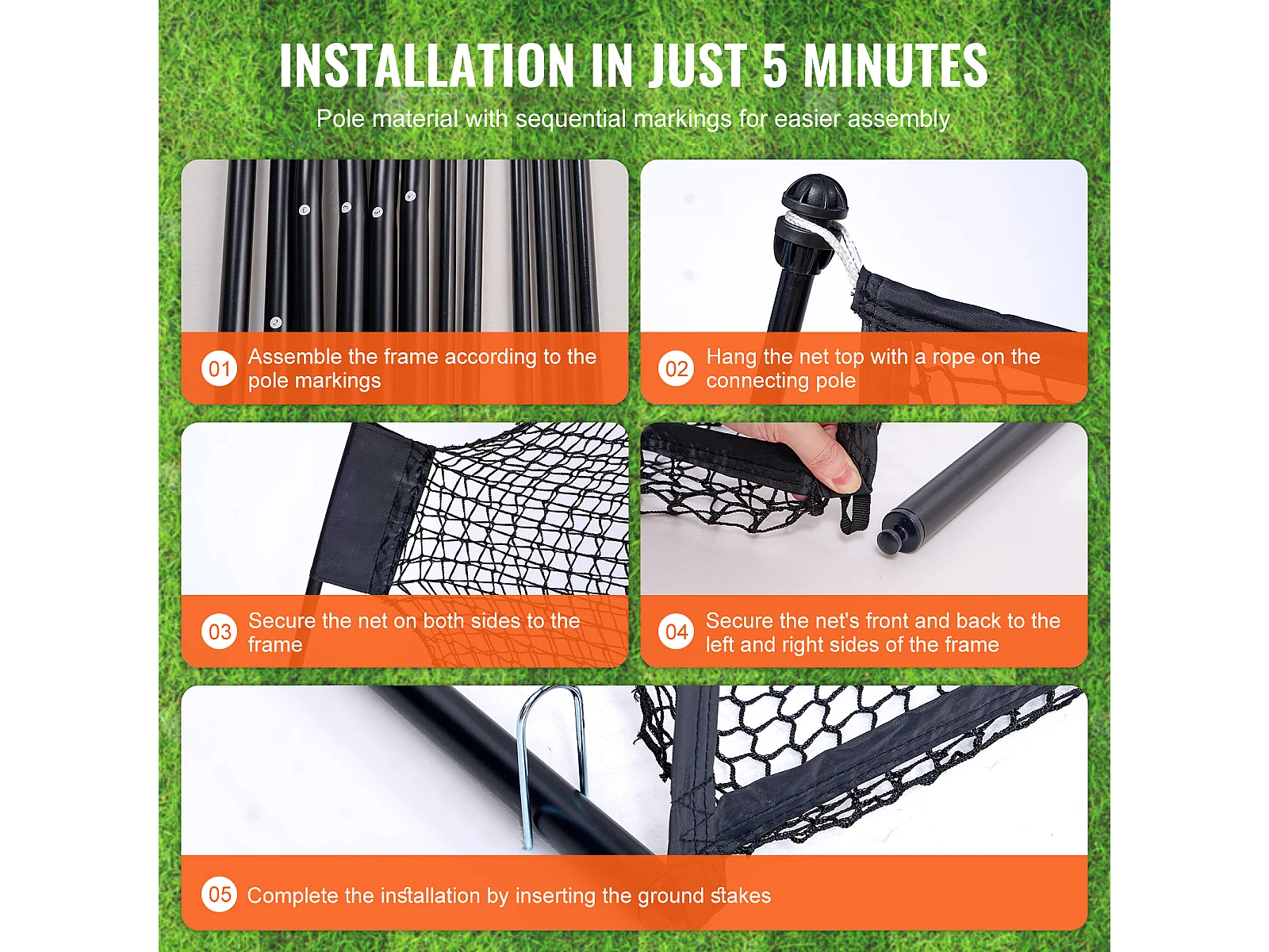 Filet de Rebond de Baseball SucceBuy 121.92 x 213.4cm Lacrosse Baseball Rebounder, Softball Bounce Back Net, Angle Réglable