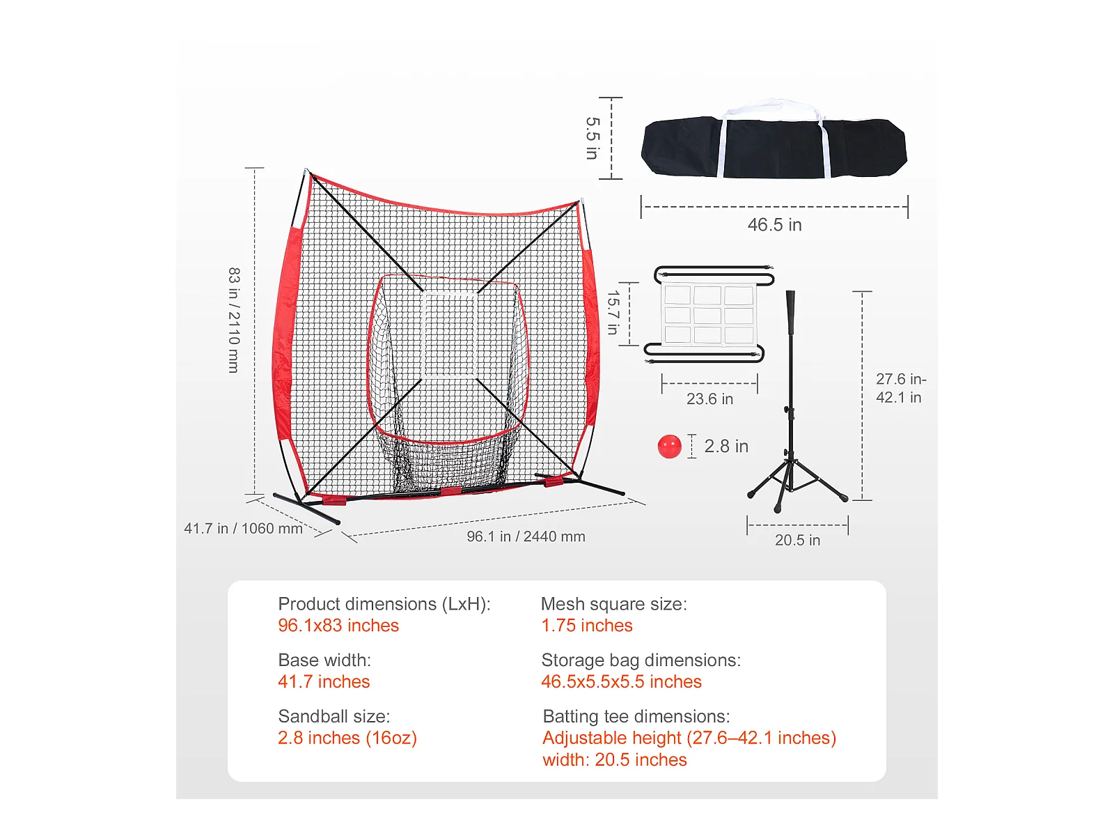 Filet d'Entraînement SucceBuy de Baseball et de Softball 213x213 cm avec Accessoires de Frappe et de Frappe pour Frapper, Frapper, Attraper