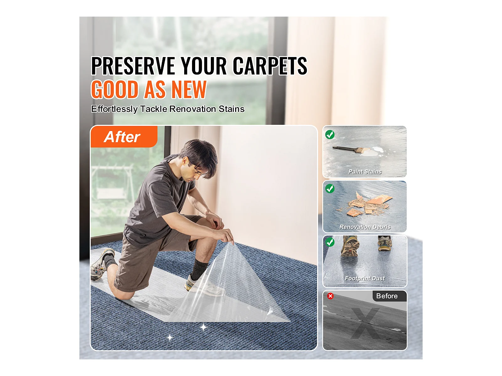 Film de Protection de Tapis SucceBuy, 61 x 1524 cm, Protecteur de Tapis PE Autocollant, Compatible avec Toute une Gamme de Matériaux de Tapis